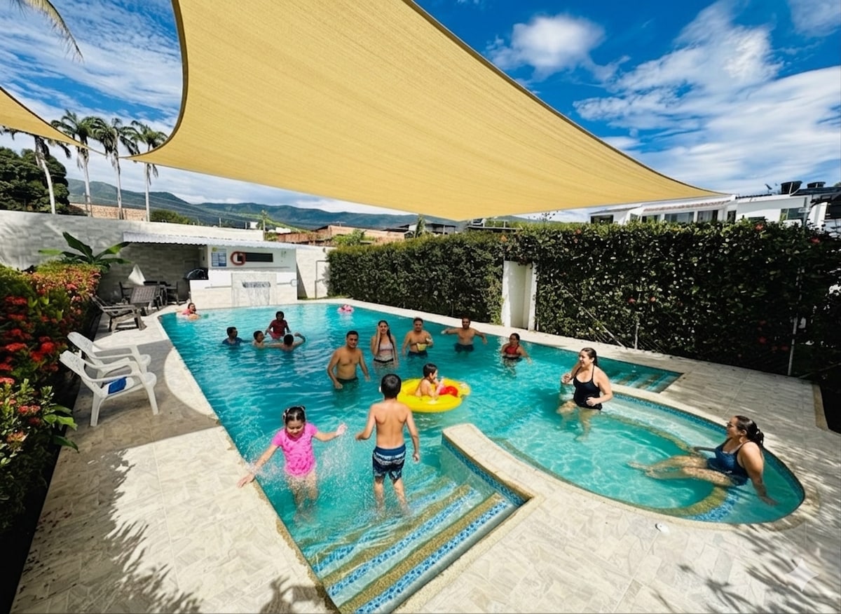 Đưa cả gia đình đến khu bất động sản tuyệt vời này, nơi có hồ bơi, bể sục và khu vực bbq. Bất động sản có 4 phòng ngủ, 4 phòng tắm, 3 sân thượng, 2 phòng và nhà bếp đầy đủ, có tủ lạnh, lò nướng, máy sấy không khí, máy xay sinh tố, máy xay rau, máy làm bánh sandwich, v.v. Gần trang trại có các cửa hàng, bán thực phẩm và đồ ăn nhanh, máy ATM tự động và ngân hàng Bancolombia. Chỗ ở phù hợp với những người bị suy giảm khả năng di chuyển.