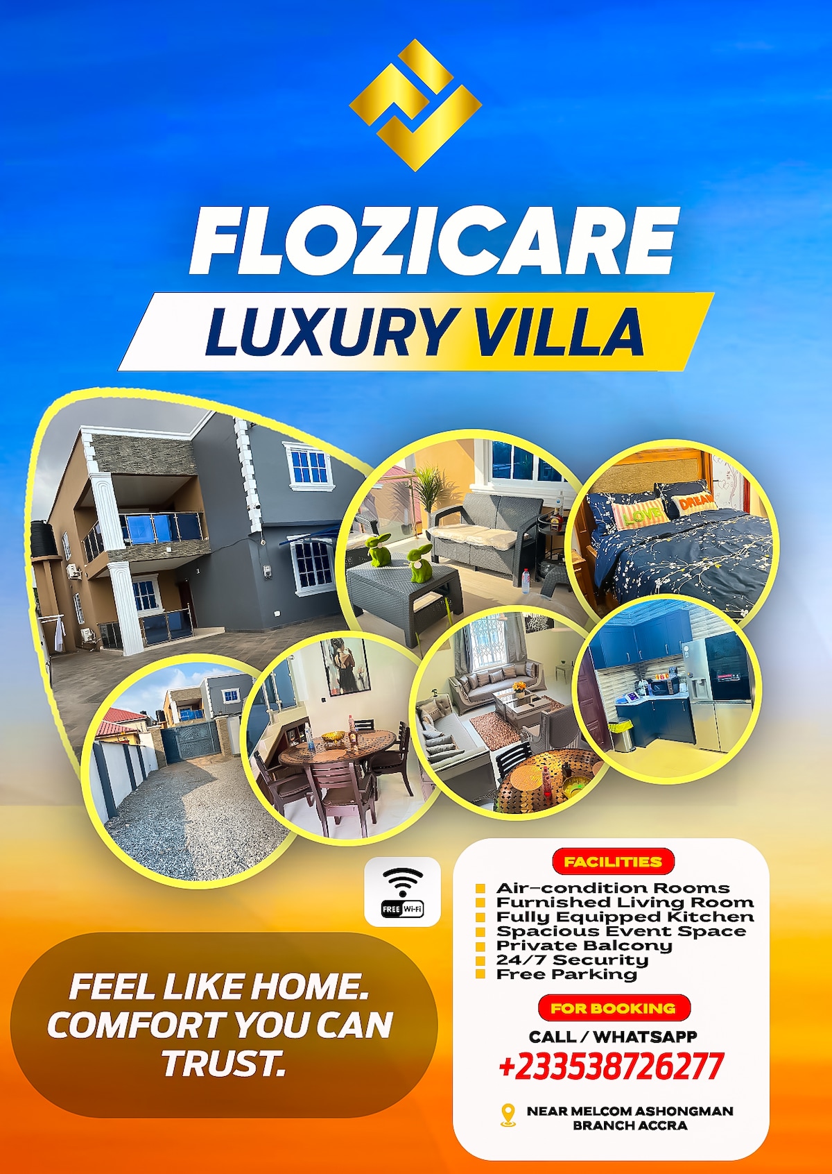 Máy phát điện dự phòng 200kva 24/7 và năng lượng mặt trời DSTV với quyền truy cập kênh đầy đủ Netflix Khung cảnh ngoạn mục Internet tốc độ cao Nằm ngay trung tâm Accra, chúng tôi chỉ cách Trung tâm thương mại Achimota và trung tâm xã hội De Temple một quãng ngắn, hoàn hảo để bơi lội và tập thể dục. Sân bay cách đó 30 phút lái xe. Để thuận tiện cho bạn, chúng tôi có dịch vụ giặt ủi chuyên nghiệp, tiệm cắt tóc và tiệm làm tóc tại chỗ. Thêm vào đó, "Ayewamu by Jane" nằm ngay bên cạnh, phục vụ các món ăn địa phương ngon miệng.