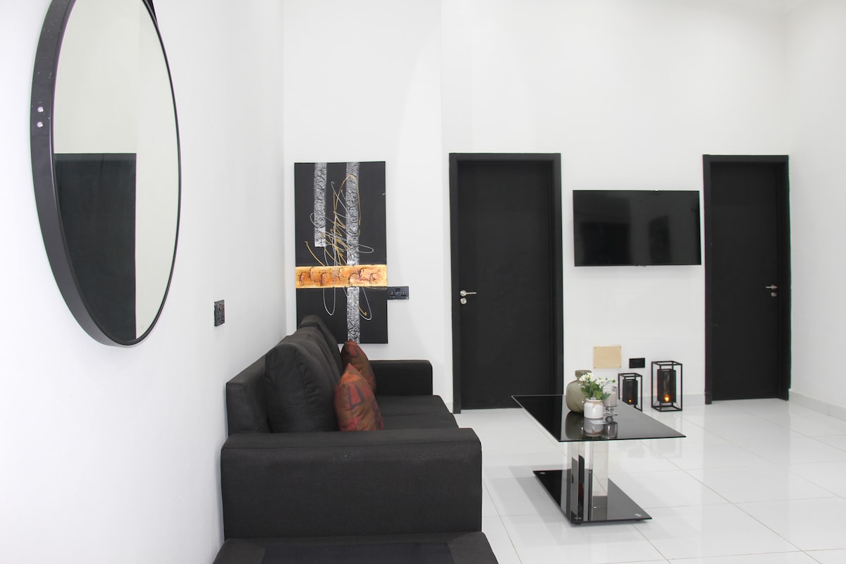 Chào mừng bạn đến với kỳ nghỉ đô thị cao cấp tại thành phố Accra! Với tầm nhìn tuyệt đẹp ra dãy núi Aburi, chỉ cách đó vài phút lái xe hoặc 15 phút đi bộ. Cách sân bay dưới 12 dặm, đi thẳng trên đường M4 mà không rẽ. Căn hộ hai phòng ngủ của chúng tôi mang đến niềm vui và sự thoải mái với an ninh 24/7, điện và nước 24/7, với các tiện nghi độc quyền, chẳng hạn như hồ bơi, sân thượng, phòng tập thể dục hiện đại, nhà bếp đầy đủ, wifi, tiệc nướng và nhiều tiện nghi khác sẽ làm cho thời gian lưu trú của bạn thực sự khó quên.
