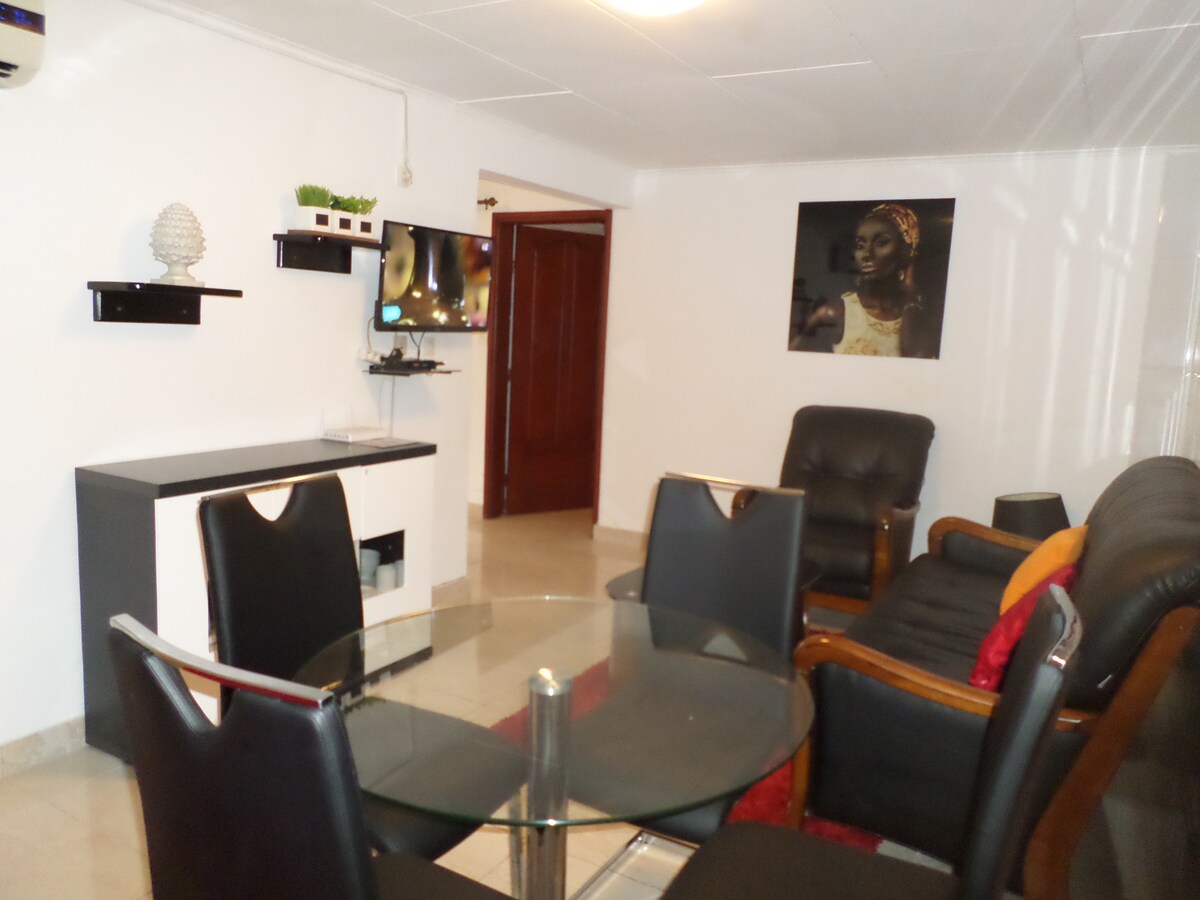 Cho dù bạn đang đi công tác hay nghỉ dưỡng, hãy thư giãn tại nơi ở ấm cúng, yên tĩnh và an toàn này. Ẩn mình ngay trung tâm quận Angondje/Sherko trong khu dân cư gần các tiện nghi: cửa hàng tạp hóa; hiệu thuốc siêu thị; tiệm bánh; nhà hàng; trạm xăng; hộp đêm; quán bar, v.v. Chỗ ở này mang đến cho bạn sự thoải mái và thanh thản mà bạn cần, được trang bị nội thất đẹp mắt và điều hòa không khí đầy đủ. Sống những điều tuyệt vời nhất ở Libreville trong một khung cảnh thân thiện. Mong sớm được gặp bạn.