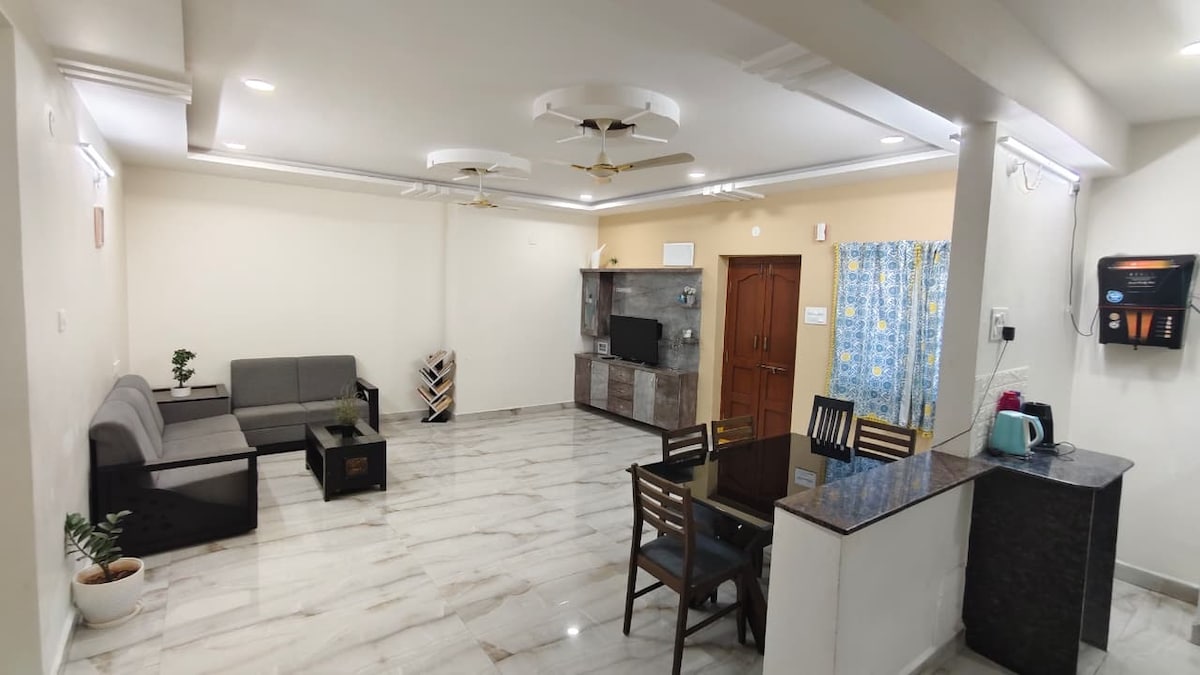 Chào mừng bạn đến với Evara Suites, một căn hộ 3 phòng ngủ tinh tế và rộng rãi gần Gachibowli, một trong những khu vực sôi động và có kết nối tốt nhất ở Hyderabad. Được thiết kế để mang lại sự thoải mái và tiện lợi, ngôi nhà thanh lịch này lý tưởng cho các gia đình và những người đi công tác muốn có một kỳ nghỉ thư giãn, không phiền phức, dễ dàng đi lại đến các trung tâm kinh doanh, bệnh viện và các điểm tham quan quan trọng của thành phố. Thông tin cần biết trước khi đặt phòng: ✔ Phù hợp cho các gia đình và nhóm đi du lịch nghỉ dưỡng, công tác hoặc y tế 🚫 Tuyệt đối không được phép tổ chức tiệc tùng và uống rượu