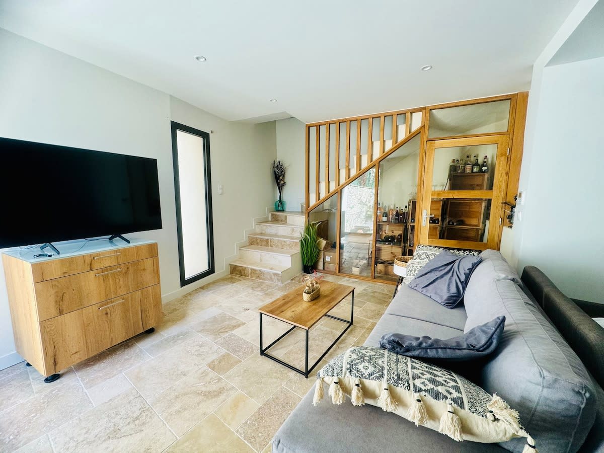 Một ngôi nhà làng sáng sủa nằm giữa vườn nho và bụi cây. Tất cả các tiện nghi và được cải tạo trang nhã để tận hưởng một kỳ nghỉ yên tĩnh với gia đình hoặc bạn bè. Với 1, 2 hoặc 3 phòng ngủ (lựa chọn của bạn), một phòng khách mở, một sân thượng có bóng râm, một khu vườn và một gara lớn, đây là nơi lý tưởng để khám phá sự quyến rũ của miền Nam. Chỉ cách Nîmes và Uzès 15 phút, nằm trong một ngôi làng gần tất cả các tiện nghi và ngay trung tâm của thiên nhiên, bạn có thể tiếp cận các con đường mòn đi bộ và chợ địa phương.