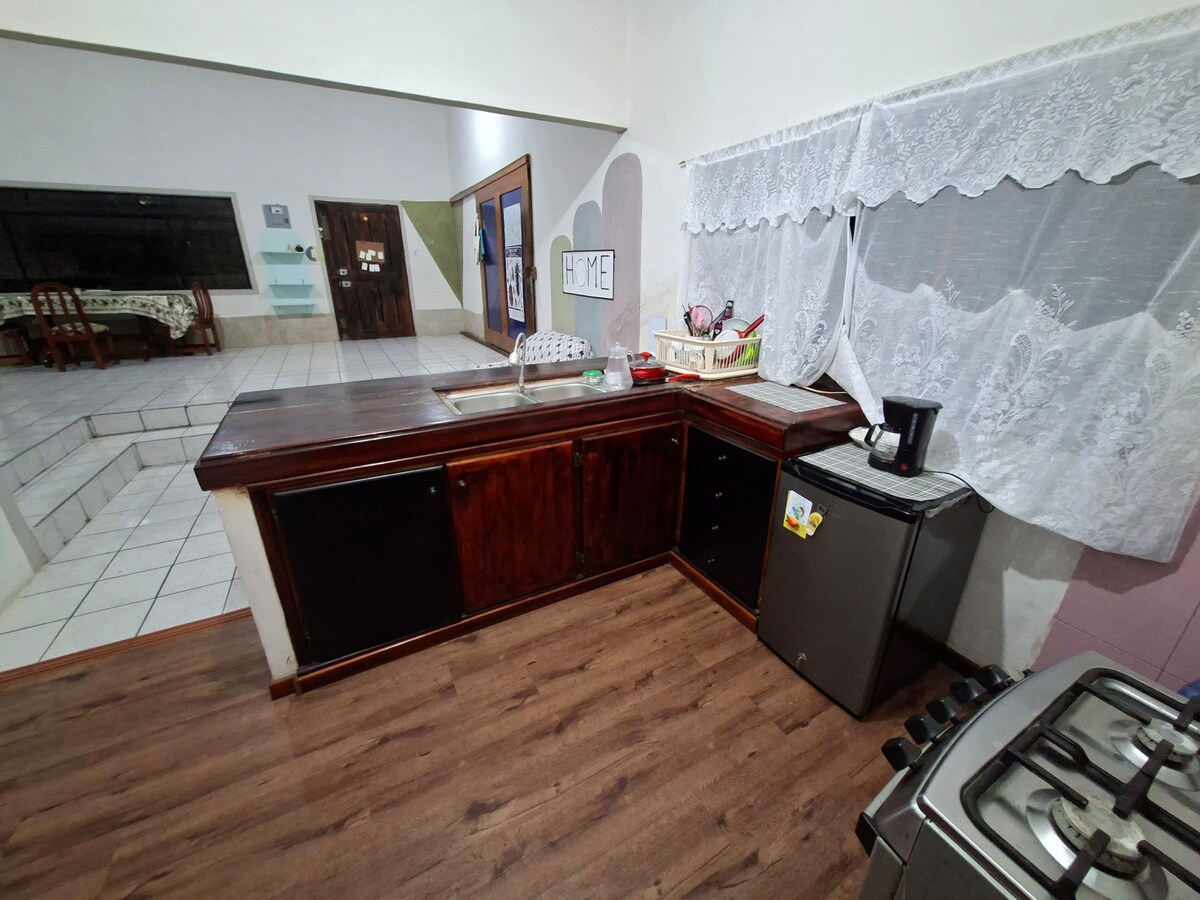 Cómodo apartamento renovado, con una habitación independiente, baño privado y aire acondicionado. Cuenta con una cama y colchon a estrenar con cortinas black-out para un descanso óptimo, además de un sofá cama ideal para un huésped adicional. La cocina esta equipada con utensillos basicos para uso diario. Ubicada a pasos del centro y a solo 4 minutos a pie del muelle de pasajeros, muy cerca del Malecón. Perfecta para descansar y disfrutar de la zona.