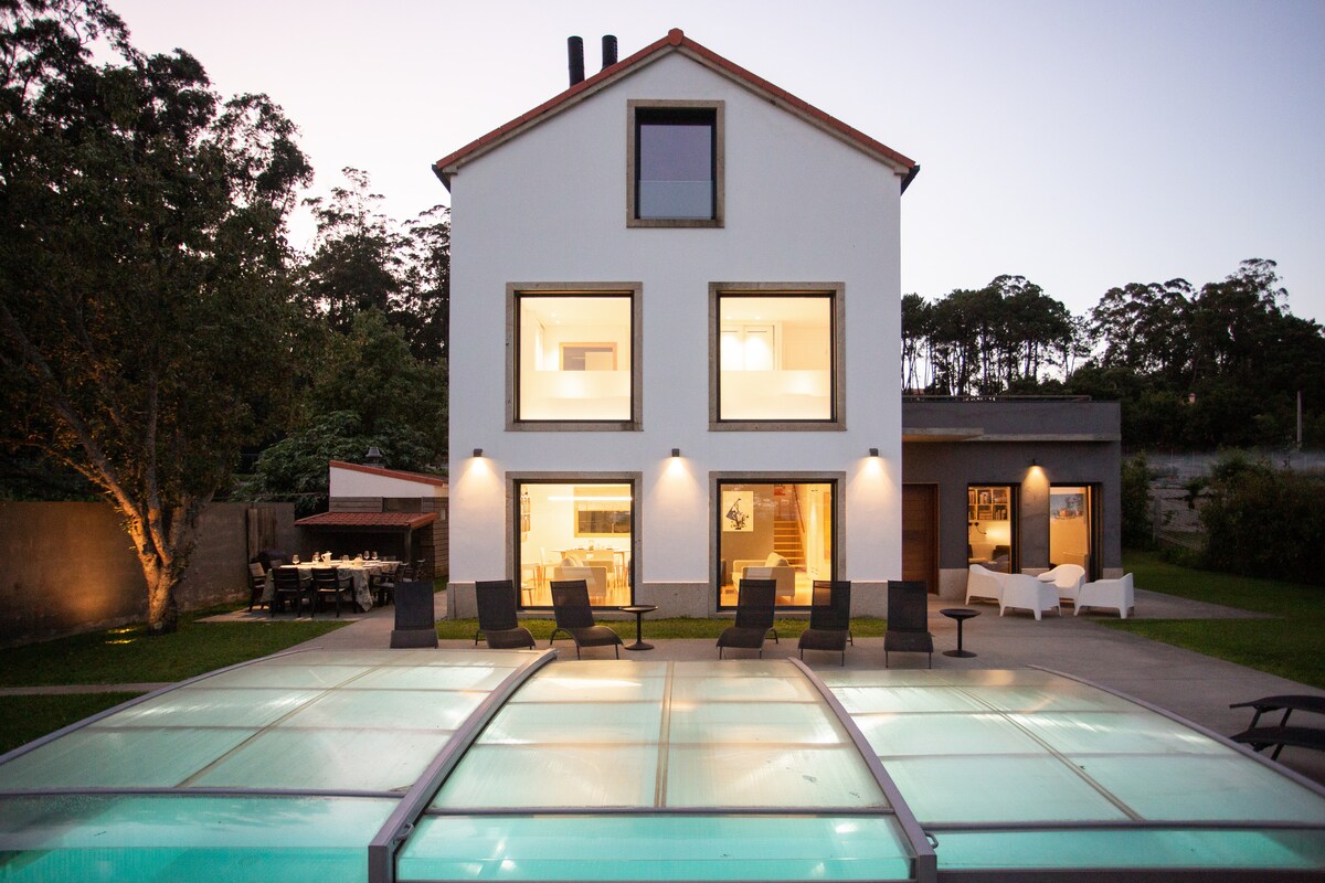 Ngôi nhà mới tuyệt vời nằm ở làng O Rosal, được biết đến với những vườn nho tuyệt vời và xinh đẹp, với vi khí hậu tốt nhất ở Galicia. Ngôi nhà nằm ngay trước Bồ Đào Nha, trên bờ biển Tây Ban Nha của cửa Rio Miño. Cách nhà 5 km là làng chài A Guarda. Có những bãi biển cát trắng nằm trên các hòn đảo của sông Miño ngay trước nhà và trên Đại Tây Dương. Rất gần đó cũng có những ngôi làng du lịch điển hình xinh đẹp ở Tây Ban Nha và Bồ Đào Nha.