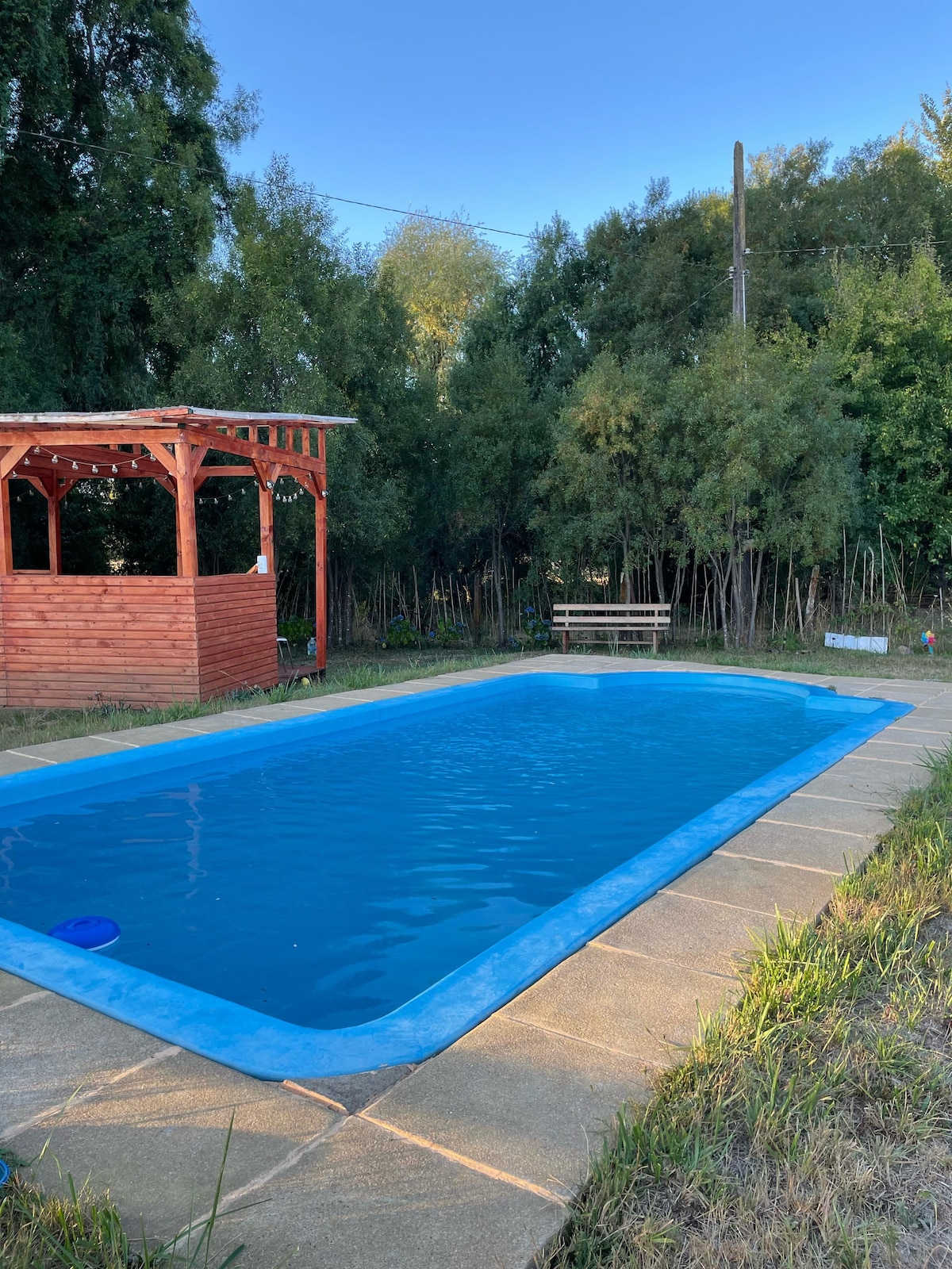 Casa a orilla de la Ruta 5, Km. 584 Ercilla, ideal para familias, máximo 6 huéspedes, 1 cama matrimonial, 2 camas individuales, 1 cama nido y un futón grande. Cuenta con TV Smart, Disney+, Netflix, Zapping, wifi, piscina temporada de verano, amplio espacio para diversión y juegos al aire libre, pancho para sados. Ubicada en la Ruta 5 Sur, km 584, con dirección Norte, a pocos metros de la Ruta. Piscina habilitada desde el 15-12 al 15-03. Contamos con tinaja con hidromasajes de costo adicional.