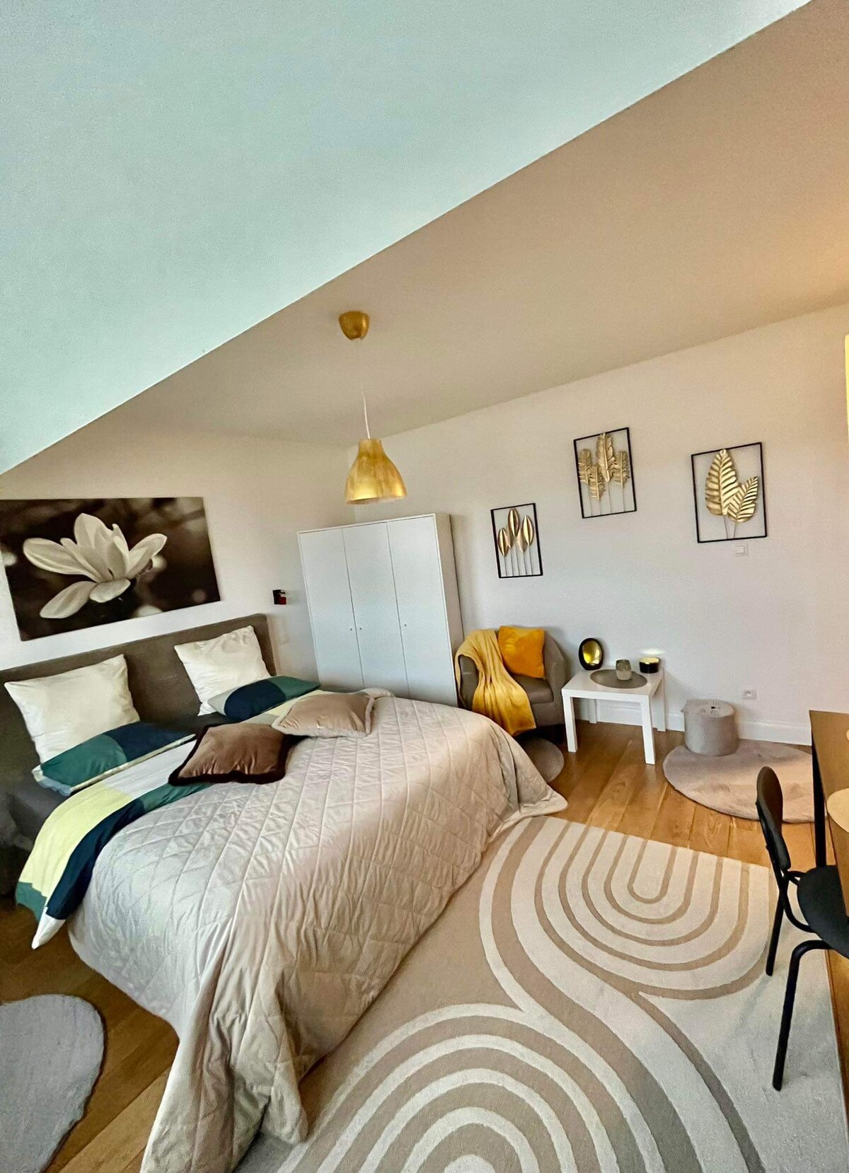 ▪️ Ngôi nhà thanh lịch được cải tạo hoàn toàn vào năm 2024, ở tầng 3, có thang máy, mang đến bầu không khí ấm áp và ấm cúng. Khu bảo tồn sang trọng và thoải mái, nơi mọi chi tiết đều được cân nhắc kỹ lưỡng để mang đến một trải nghiệm đáng nhớ và thư giãn. ▪️ Giường đôi 140cm giống như khách sạn. Nệm và gối săn chắc trung bình. Nhà ▪️ bếp thiết kế được trang bị và mặt bằng mở đầy đủ chức năng. ▪️ Gần phương tiện giao thông: Xe buýt 2 phút, Xe điện 6 phút và tàu điện ngầm 12 phút đi bộ. Trung tâm thành phố 20 phút và 10 phút đi xe hơi.