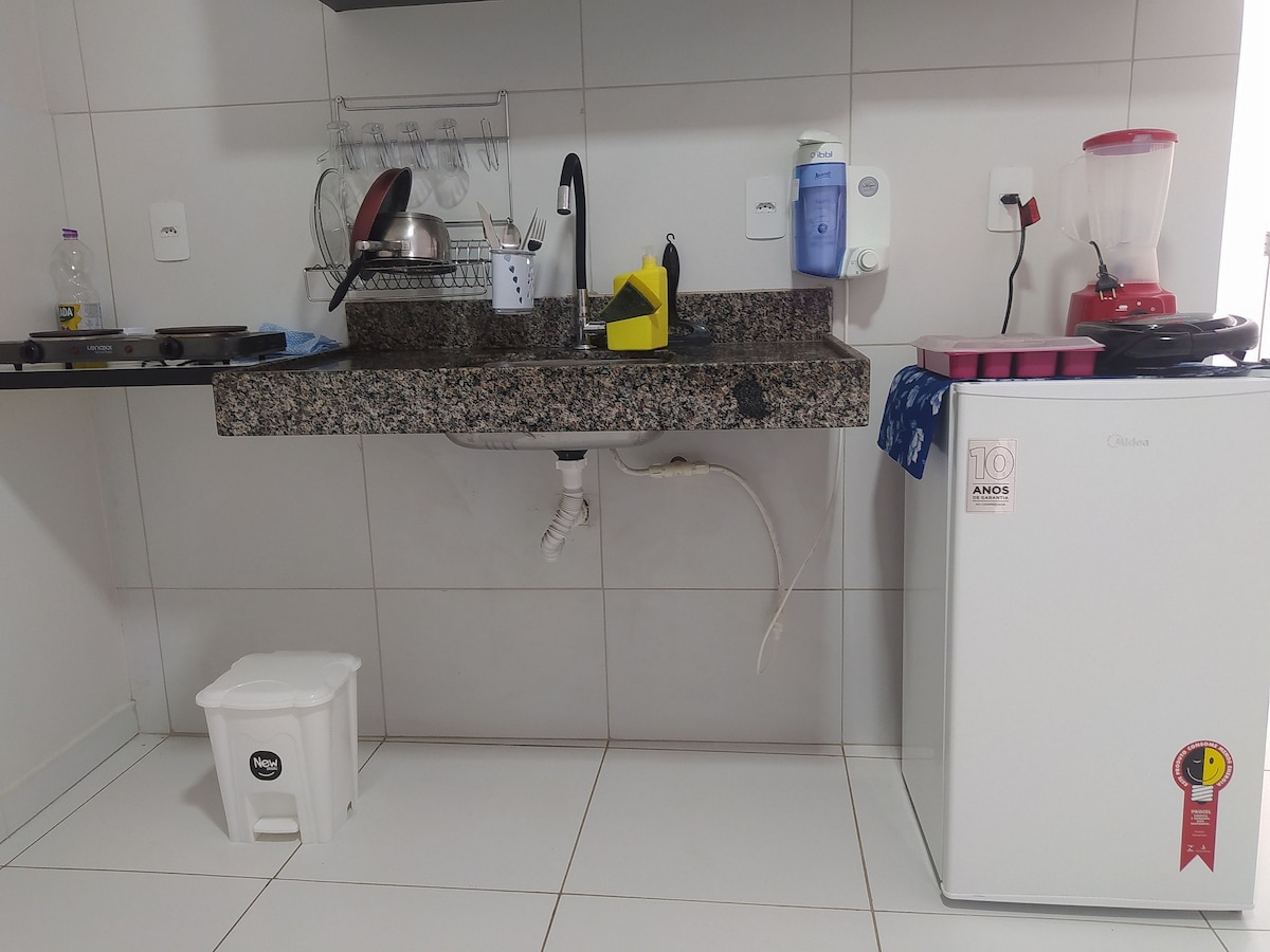 Căn hộ studio hoàn chỉnh và ấm cúng với tầm nhìn hướng ra đại lộ chính của Garanhuns. Lý tưởng cho các cặp vợ chồng, khách du lịch và khách đi công tác. Có phòng ngủ với giường thoải mái và điều hòa không khí, nhà bếp đầy đủ tiện nghi, phòng tắm riêng, Wi-Fi và TV thông minh. Vị trí tuyệt vời, gần chợ, nhà hàng và điểm tham quan du lịch. Hoàn hảo cho những ai đang tìm kiếm sự thiết thực và thoải mái!