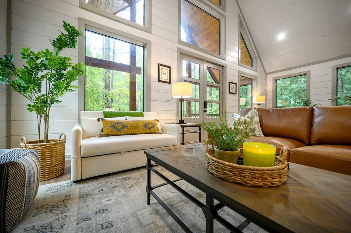 Bầu trời màu xanh lá cây nhạt do @CabinsandCampfire tổ chức Một lối thoát ấm cúng với phòng ngủ cỡ king sang trọng, bếp cho người sành ăn và không gian ngoài trời yên tĩnh để thư giãn bên lò sưởi hoặc bồn tắm nước nóng. ✨ Spa-Giống như phòng tắm khép kín Bồn tắm nước nóng 🛁 thư giãn 🔥 Lò sưởi và hố lửa ngoài trời Trình phát bản ghi 🎶 Crosley với Album cổ điển Chỗ ở thân thiện với 🐾 thú cưng