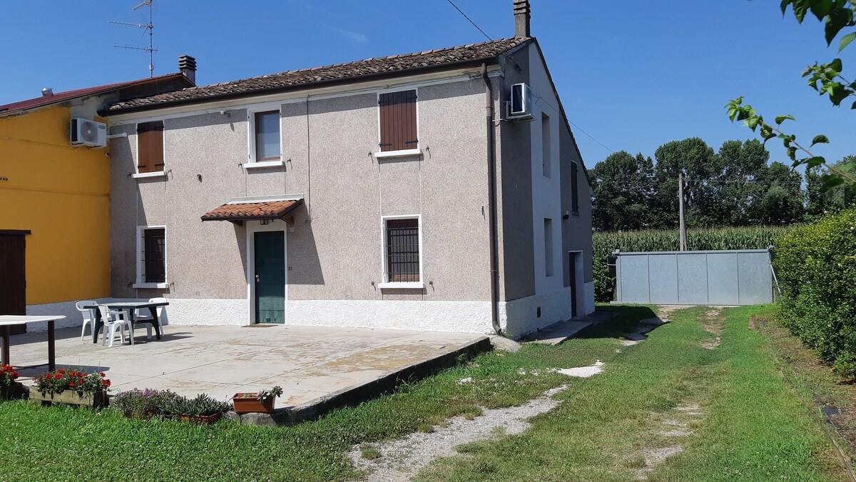 L'alloggio è una casa indipendente, composta da soggiorno con divano e TV, cucina attrezzata e dotata di elettrodomestici e stoviglie, due camere matrimoniali ciascuna con il proprio bagno completo di servizi e doccia. Non mettiamo in condivisione gli ospiti. Esternamente c'è un giardino privato e un ampio spazio cortilizio dove poter parcheggiare in sicurezza i mezzi di trasporto. La zona è molto tranquilla e silenziosa, vicinissima ad una pista pedonale e ciclabile in riva al fiume Po.