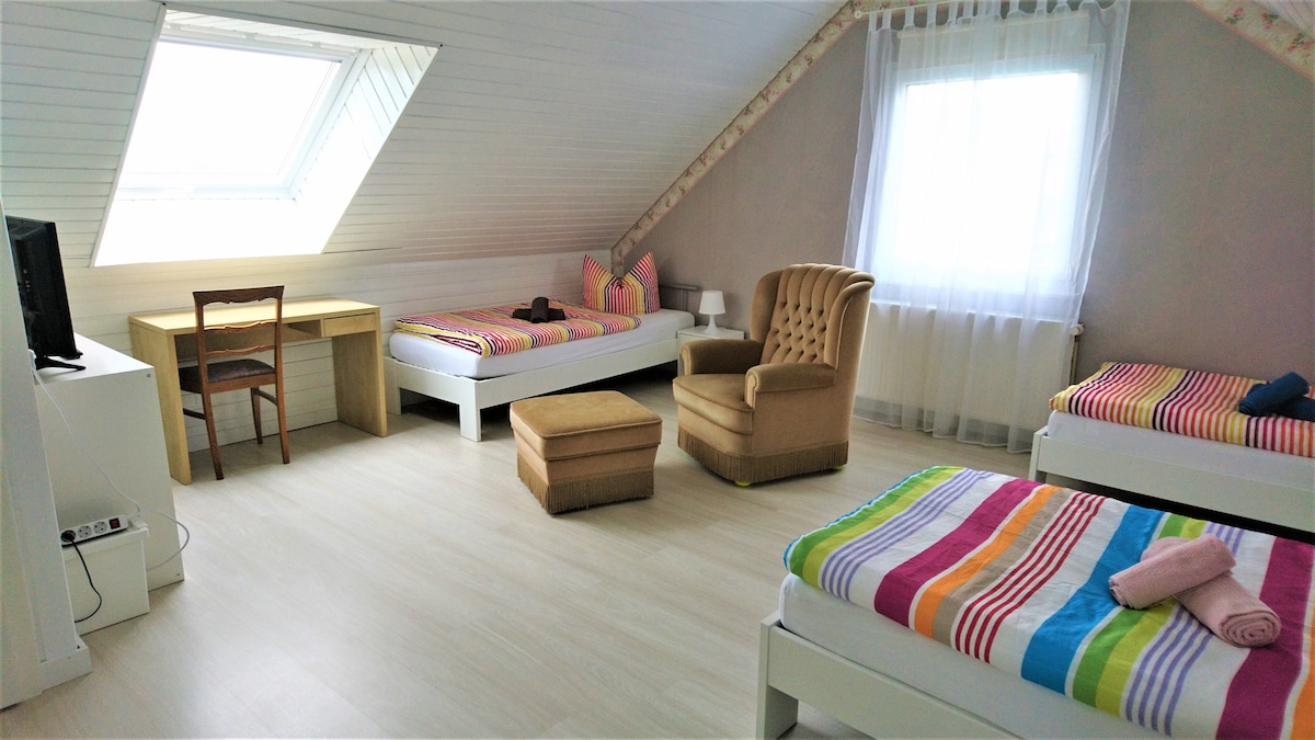 Kick back and relax in this calm, stylish space. There is a lot of room for up to 4 people, areas to relax, cook or work. Feel free to use the PlayStation or the electric sit/stand desk for home office activities. The loft is not far from Aschaffenburg, Frankfurt, Wertheim Village or Wuerzburg. All can be reached in max 50 minutes or less. Also, Spessart forest starts right behind the loft, a lot of walking and biking opportunities can be accessed from Waldaschaff and from the loft.