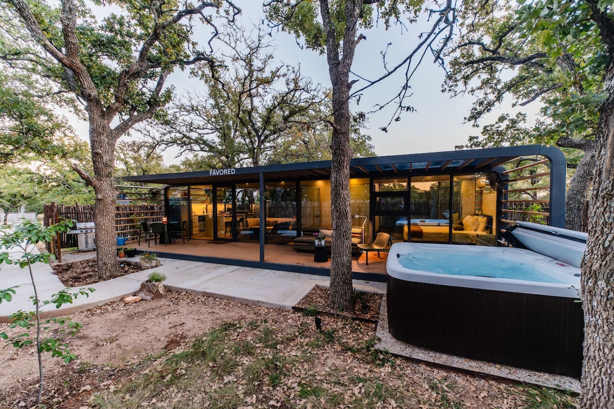 Ở trong một cabin khung chữ A hiện đại trên 17 mẫu đất tuyệt đẹp ngay bên ngoài Fredericksburg. Comal ngủ 2–4 với phòng ngủ cỡ King, tầng lửng mở và ghế sofa ngủ. Thư giãn trên boong tàu, nướng bữa tối ngoài trời, thư giãn trong bể chứa riêng (có máy sưởi tùy chọn) hoặc tụ tập quanh hố đốt khí propan dưới bầu trời đầy sao. Cách Phố chính chưa đầy 10 phút, đây là lối thoát hoàn hảo của Hill Country.