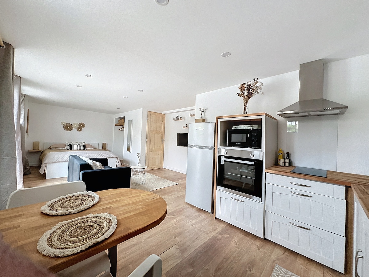 Thư giãn trong không gian yên tĩnh và phong cách này. Studio 27 m2 được cải tạo gần đây với các sản phẩm chất lượng Chỗ đỗ xe và sân thượng của nó sẽ được dành riêng cho bạn!!! Mọi thứ đã được thực hiện để bạn cảm thấy thoải mái... Bộ đồ giường, phạm vi khách sạn, sẽ đảm bảo bạn có những đêm thư giãn để bạn cảm thấy như ở nhà!! Ngoài ra, với kết nối internet, bạn có thể yên tâm làm việc!Lý tưởng cho chuyến công tác. Hoàn hảo cho một kỳ nghỉ ở Viarhona.