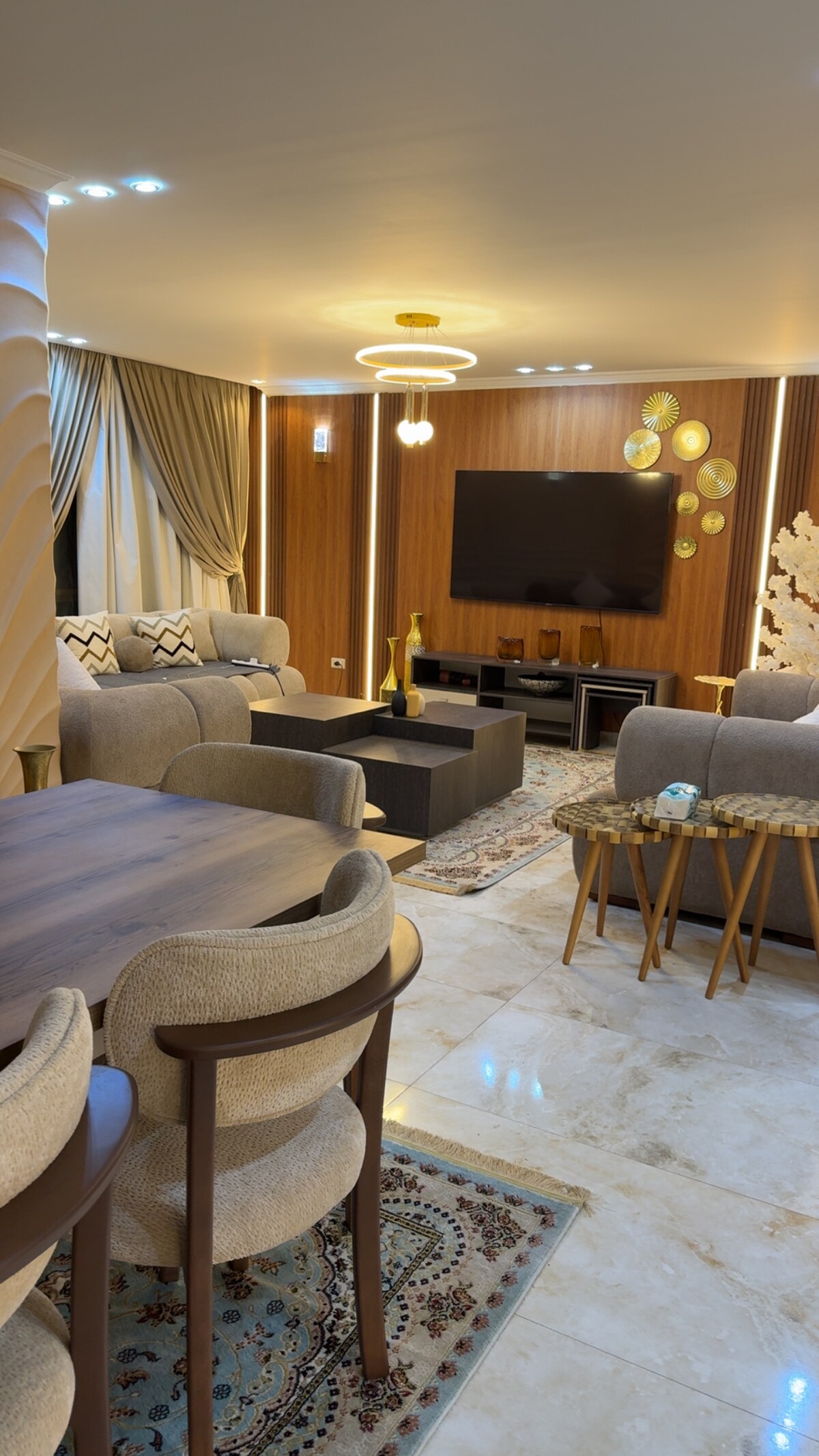 استمتع مع عائلتك وزملائك في مكاننا المميز شقه طابقين 571 متر غرفه ماستر في الدور الارضي و3 غرف بالاعلى كمان انه يوجد مطبخ ارضي وطاولة القهوى في الاعلى اثاث من افخم المحلات التجاريه وعاملة نظافه عاليه من كل النواحي كما انه تتوافر بالقرب منكم كوفيهات مثل لاقونا وطاولة شاي وكوفي ورده ومطعم السده ومحل صرافه في الشارع المقابل وكوافيرات عده