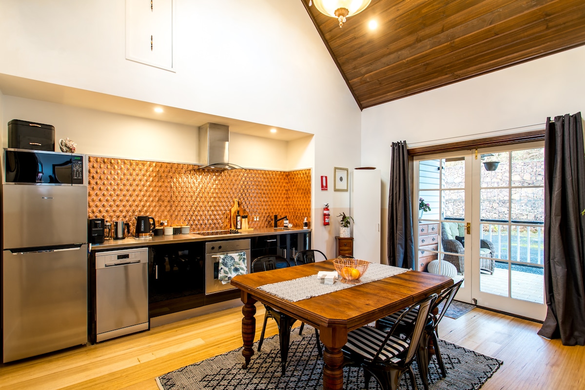 Huon River Hideaway is nested on the edge of the picturesque Huon River in Cradoc, Tasmania. A haven for couples or the solo traveller, the restful ambience will make you feel instantly at home. Inspired by its surroundings, our architecturally designed and artistically appointed home is the perfect place to escape the everyday world . Sit back, relax and soak up the seasonal cadences of the beautiful Huon River. Loose track of time and clear your mind in the reflections off the river.