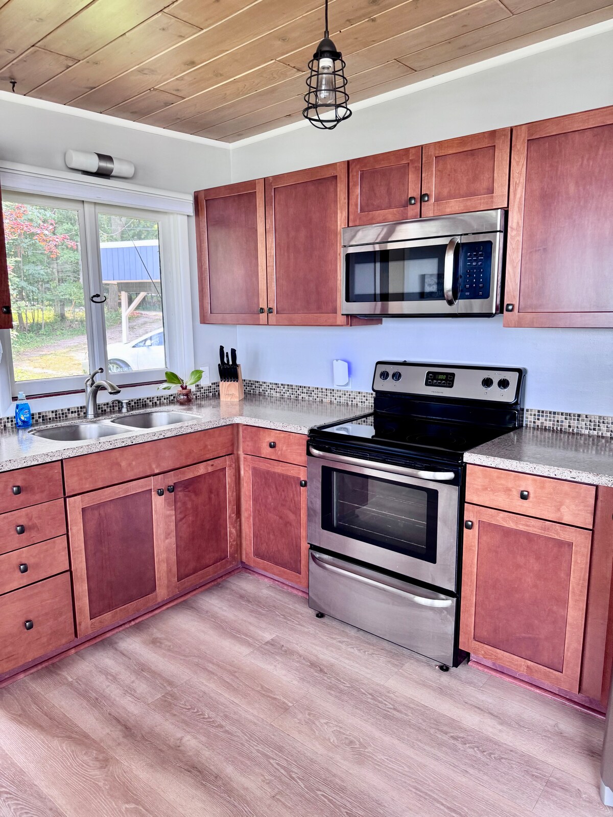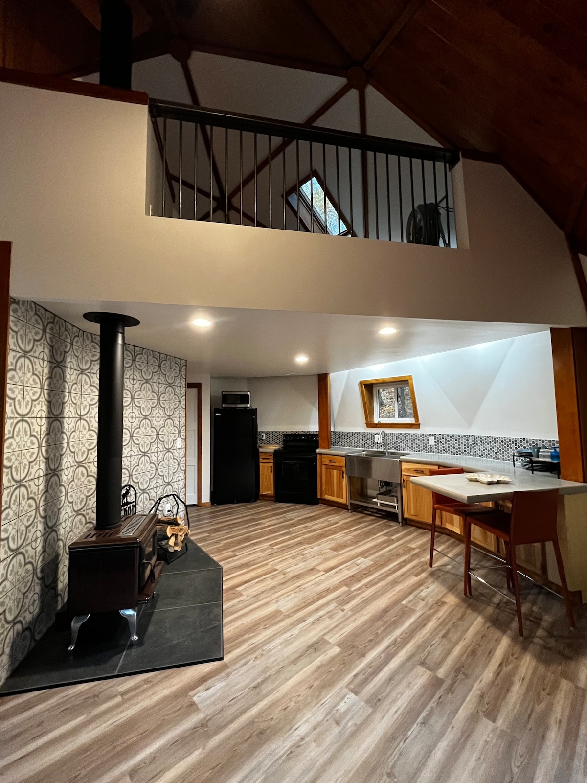 Fall into the rabbit hole to experience our unique twist on a Wonderland inspired tiny house. Boasting a Queen size bed, a full kitchen and bathroom, and everything in between, you are bound to have a relaxing getaway... with a little bit of adventure! The spacious deck (with hot tub) overlooks the forest, and it is the perfect place to enjoy a cup of coffee or a glass of wine. The Underwood Tiny House has been created to give each person who walks through its door an experience like none other!
