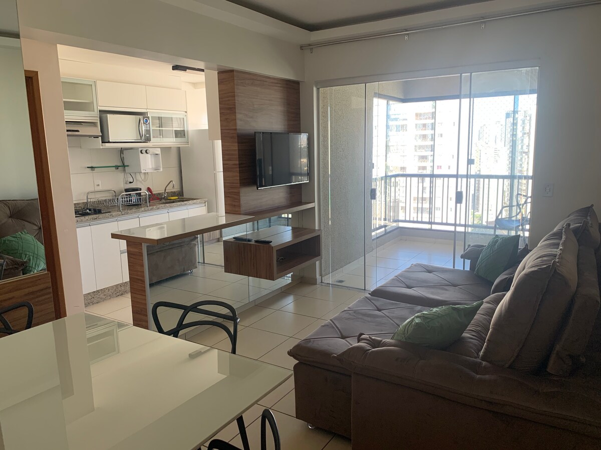 Căn hộ cao cấp, tầng 26, vị trí tuyệt vời, được trang bị đầy đủ tiện nghi. Hai phòng ngủ (cả hai phòng), cách Công viên Flamboyant 300 m, cách Sugar Loaf và Vườn Trung tâm thương mại Goiás vài mét. Căn hộ có Wi-fi và TV với các kênh. Phòng đầu tiên giường cỡ King và điều hòa không khí. Phòng thứ hai có 2 giường đơn. Ban công với khu vực ăn uống và tầm nhìn đẹp. Bếp đầy đủ tiện nghi với dụng cụ mới. Căn hộ chung cư cung cấp các dịch vụ như phòng tập thể dục, hồ bơi và gara.
