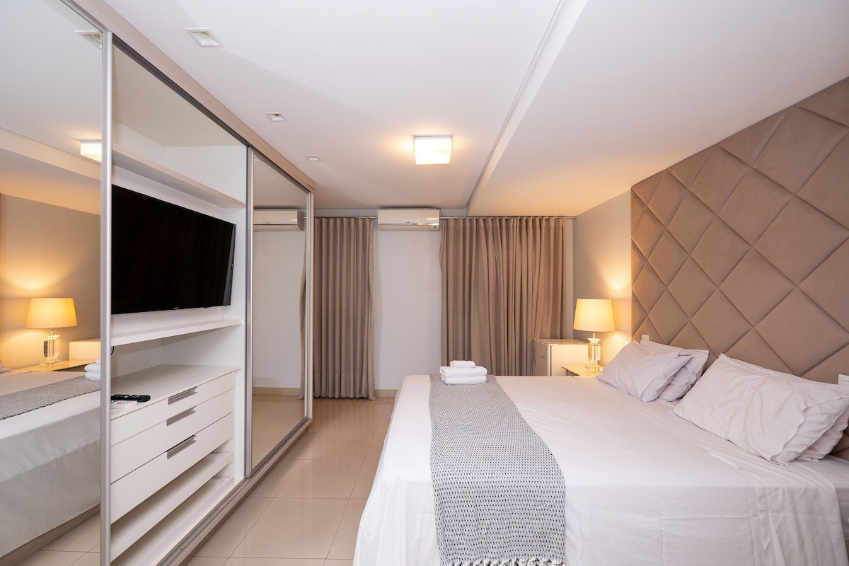 Gặp gỡ tòa nhà biểu hiện thông qua video @ bestseason __ 2 máy điều hòa không khí, một trong phòng khách và một trong phòng ngủ (một trong những giường là giường đôi, giường còn lại là một chiếc sofa giường đôi thoải mái chỉ dành cho trẻ em) chìa khóa kỹ thuật số, nhân viên hỗ trợ 24 giờ Kênh truyền hình cáp đầy đủ +Net Flix, HBO và các kênh khác - khu vực + quý tộc của Goiânia, cách Goiânia Shopping 1 km và cách Orion 900 m -garagem -academia, phòng trò chơi,net 500mb, Net Flix, truyền hình cáp 4k, giường và phòng tắm - Khu vực giải trí