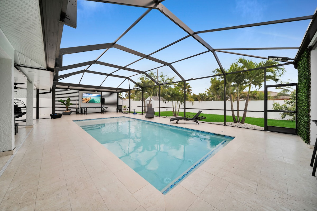 Hãy đưa cả gia đình đến thiên đường thư giãn này trong một khu phố yên tĩnh, chỉ cách các bãi biển, khu mua sắm và ăn uống tốt nhất của Naple vài phút! Ngôi nhà có 3 phòng ngủ và nội thất đẹp, mới được mô hình hóa và trang trí vào năm 2026. Giải nén trong khu vực ngoài trời đẹp bao gồm hồ bơi hệ thống muối được sưởi ấm, lanai được che chắn, võng lớn, ghế tựa, vỉ nướng BBQ, bãi cỏ rộng rãi và nhiều góc ấm cúng để bạn tận hưởng! Những khoảnh khắc thư giãn vàng và khó quên đang chờ bạn!