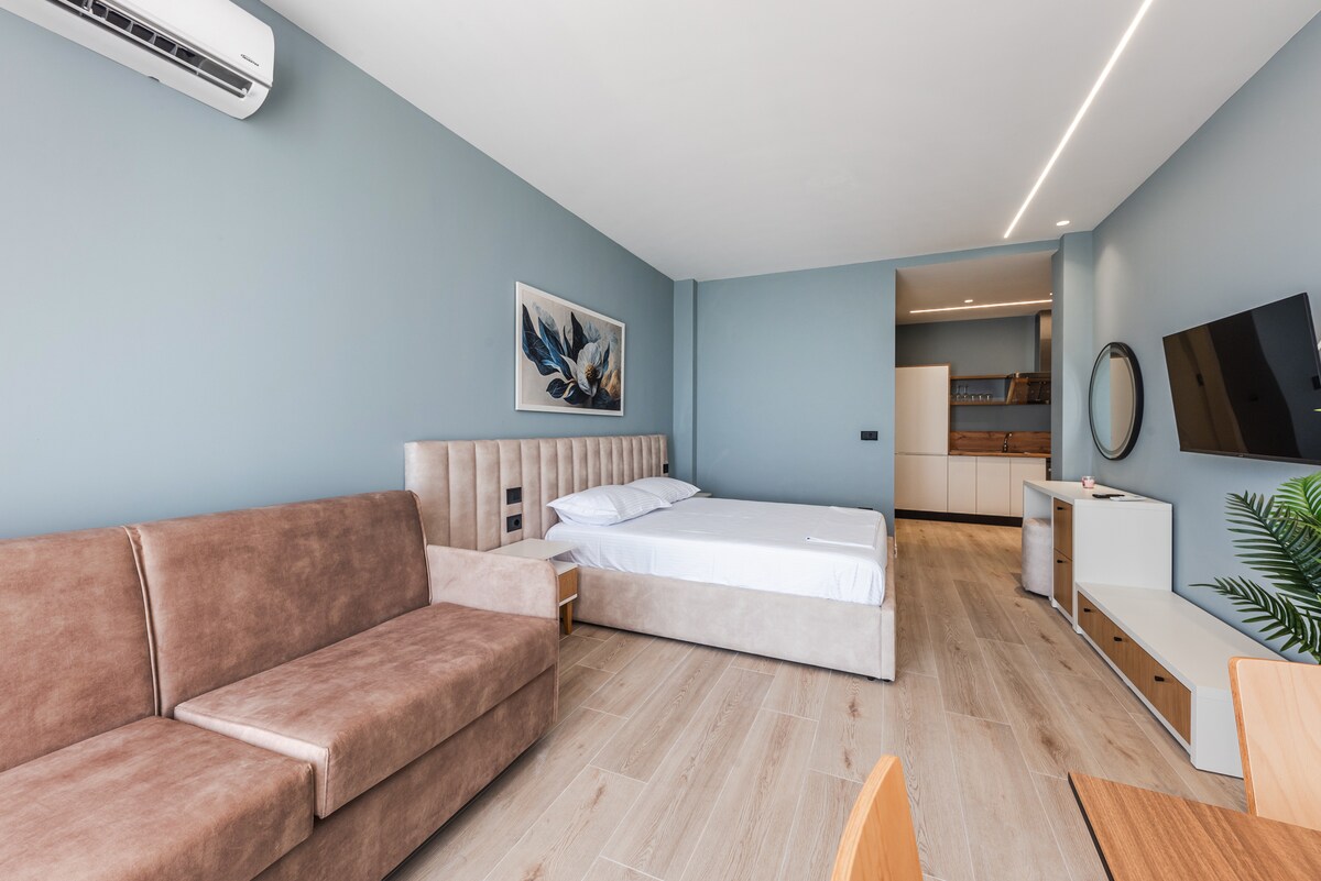 Arteg Apartments - Full Sea View nằm cách Bãi biển "Shkembi Kavajes" vài bước chân, với tầm nhìn toàn cảnh ra biển, trong khu vực thường xuyên lui tới, phía trước bãi biển. Nó ở tầng 2 và được trang bị đầy đủ tiện nghi. Nó phù hợp với chỗ ở của 1-3 người và căn hộ có phòng khách /phòng ngủ, nhà bếp và phòng tắm. Căn hộ có bếp với tất cả dụng cụ nấu ăn, điều hòa không khí, wifi, TV, bãi đỗ xe trên đường phố, v.v. Nó gần với giao thông công cộng, taxi, đi bộ xung quanh bờ biển.