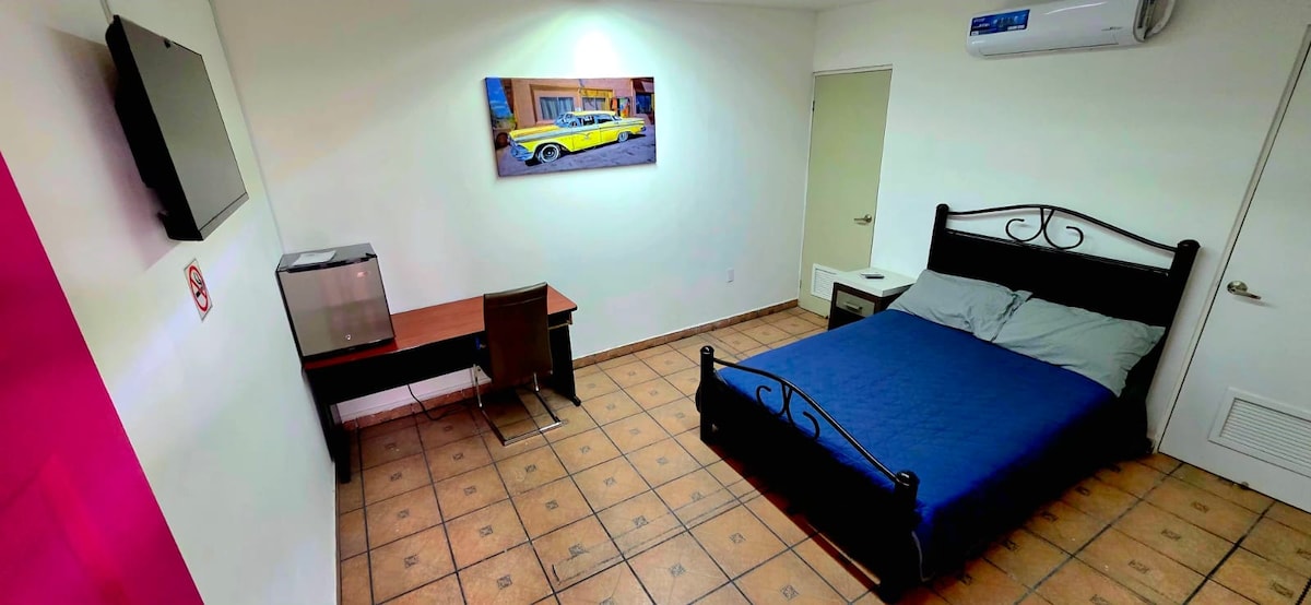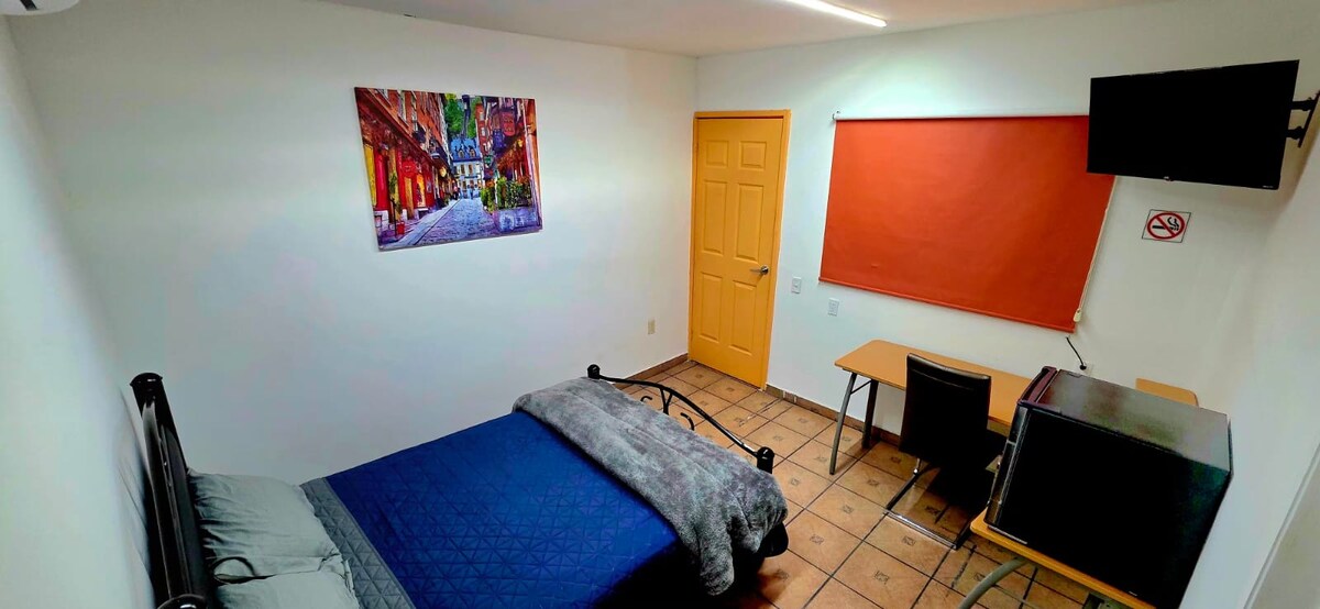 📝 Disfruta de un loft moderno y privado en zona residencial segura al norte de Torreón. A solo 5 min del aeropuerto, TSM, Galerías y hospitales, y a 10 min del centro. Equipado con WiFi rápido, TV HD con cable, Netflix y estacionamiento cerrado. Ideal para ejecutivos o familias tranquilas. Si viajas con bebé, contamos con corral y protectores de cama previa solicitud.