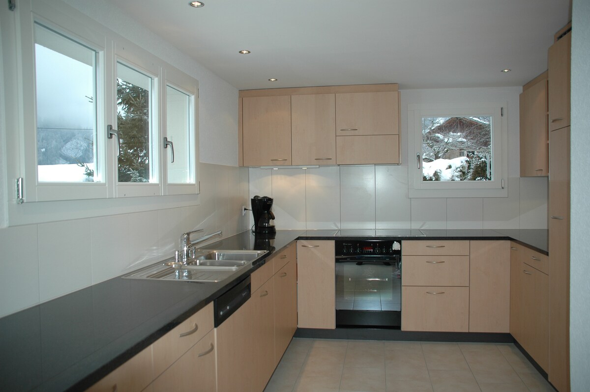 Căn hộ 4 giường riêng tư, đáng yêu với tầm nhìn ra núi độc đáo và tuyệt vời. Ngay trước nhà EIGER nổi tiếng. Căn hộ có TV, Wi-Fi miễn phí, lò vi sóng, máy rửa chén, máy pha cà phê, bát đĩa, giường,phòng tắm và ga trải giường, phòng tắm mới, 2 phòng ngủ đôi, chỗ ngồi trong vườn, bãi đỗ xe, phòng bổ sung cho ván trượt với máy sưởi khởi động trượt tuyết.