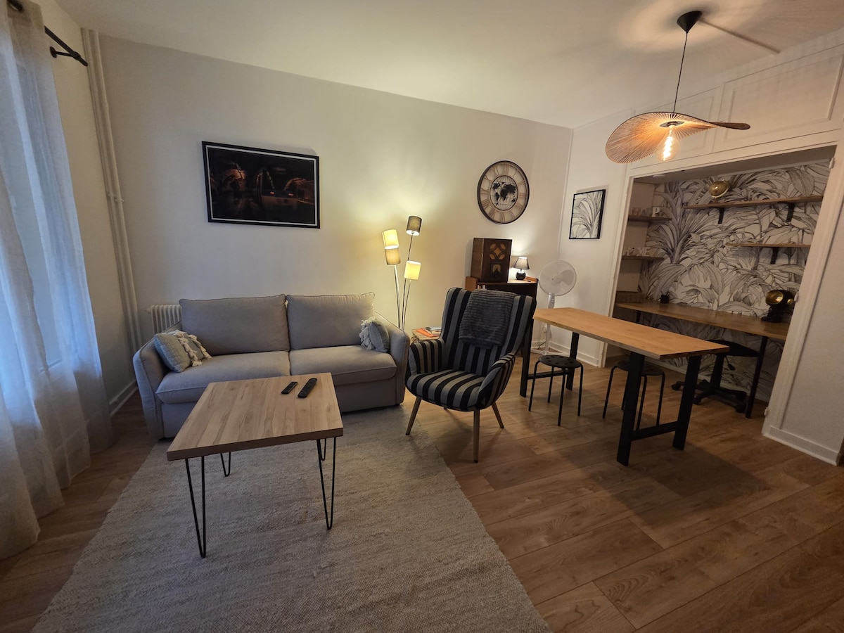 Căn hộ 50 m² mới được cải tạo, bao gồm phòng khách/ăn uống với bếp được trang bị, giường sofa, phòng ngủ với giường 160 cm, bàn làm việc, phòng tắm và nhà vệ sinh riêng. Nằm yên tĩnh gần trung tâm thành phố Angoulême, gần tất cả các tiện nghi. Chỗ ở này là một căn cứ hoàn hảo để từ đó khám phá thành phố và tận hưởng nhiều sự kiện được tổ chức. Tuyệt vời cho thời gian lưu trú cho hai người trong thành phố Angoulême!