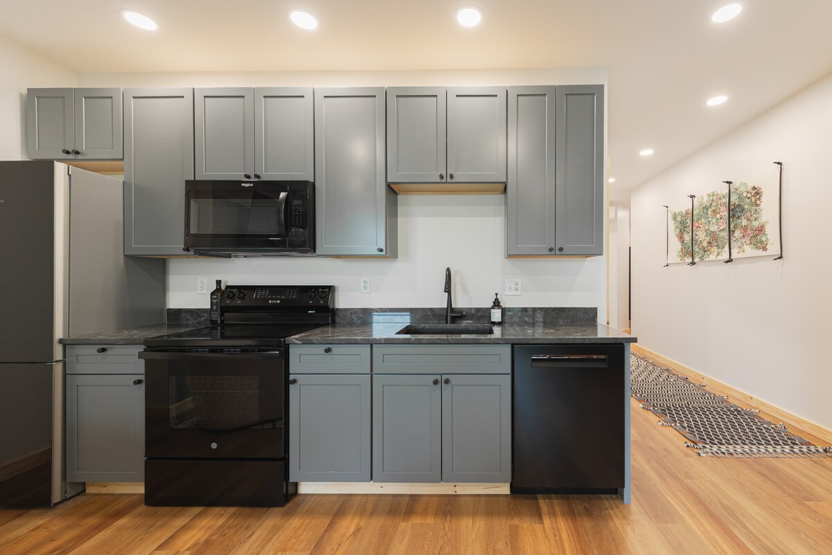 Your year round base-camp for activities, events, or just relaxing in the Adirondacks. This stylish brand new one-bedroom apartment is perfect for group trips or if the two of you want to get away by yourselves, also featuring a queen size bed with a Dreamcloud mattress in the private bedroom with a TV, and one sofa bed and a couch to accommodate more in your group if others are joining you. The apartment is above the garage which is separate from the house.