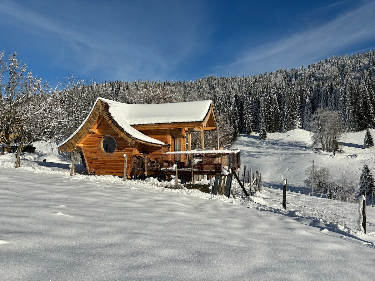 Ngôi nhà trên cây này, một bến cảng yên bình ngay trung tâm dãy núi Jura, sẽ mang đến cho bạn một sự thay đổi hoàn toàn về cảnh quan nếu bạn thích sự yên tĩnh, cô lập nhưng không quá nhiều , âm thanh của những người làm vườn và cánh đồng chim sẽ là sự thức tỉnh buổi sáng của bạn. Một cái tổ ấm cúng giữa rừng. Được cung cấp điện nhưng không có nước sinh hoạt, một cách tốt để học cách sử dụng nó một cách tiết kiệm, vẫn có thể tắm nước nóng ngoài trời,