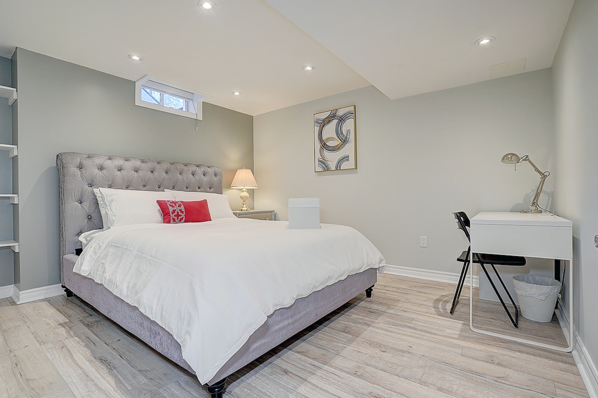 Chào mừng bạn đến với nơi nghỉ dưỡng yên tĩnh của chúng tôi! Với hai phòng ngủ được trang bị giường queen và khu vực sinh hoạt ấm cúng có giường sofa, không gian mới được cải tạo của chúng tôi mang đến sự ấm áp và thư giãn. Khách sẽ đánh giá cao lối vào căn hộ tầng hầm riêng biệt để đảm bảo sự riêng tư và dễ dàng ra vào, cùng với sự tiện lợi bổ sung của chỗ đỗ xe miễn phí. Cho dù thư giãn trong nhà hay khám phá các điểm tham quan gần đó, Airbnb của chúng tôi cung cấp khung cảnh hoàn hảo để tạo ra những kỷ niệm.