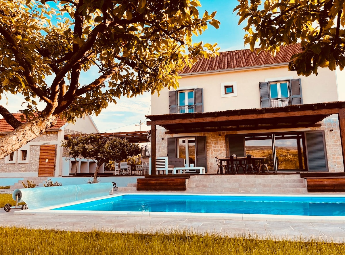 Nếu bạn đang tìm kiếm một sự yên bình, thiên nhiên và chạy trốn mỗi ngày, ngôi nhà hoàn toàn mới này từ vùng nội địa Dalmatia là một lựa chọn tuyệt vời. Đường vào ngôi làng nhỏ chỉ với một vài người sống mang lại cảm giác tận hưởng. Chim buổi sáng hót líu lo, hồ bơi nước nóng, nơi ngoài trời và trong nhà để thư giãn tuyệt đối nghe có vẻ là một lời mời tốt đẹp. Ngôi nhà là sự pha trộn giữa thiết kế hiện đại và lịch sử, nơi cũng có những khu vườn cây con xinh đẹp ở phía nam chỗ ở mang đến một bức tranh hoàn hảo về thiên nhiên thuần khiết.