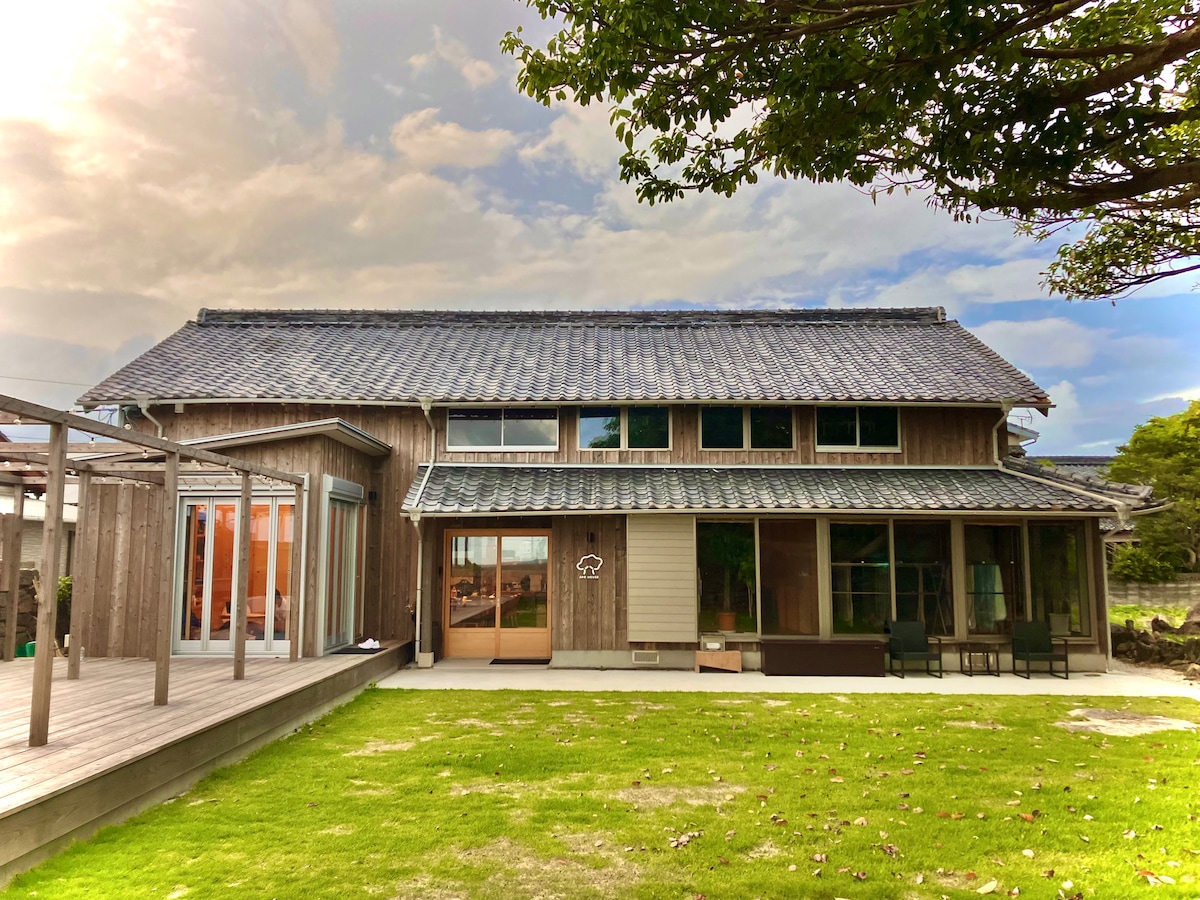 Private Traditional Japanese HouseUp to 15 Guests *Perfect for large groups, you'll have this spacious Japanese home all to yourselves with 4 bedrooms and spacious shared areas. [Traditional Meets Modern Design] *Originally built over 160 years ago, the home has been beautifully renovated, blending traditional Japanese charm with modern comfort. Sacred Tree & Garden for BBQ and Stargazing Majestic 400-year-old “Ako” tree, wide grassy yard is perfect for BBQs, outdoor meals, and star gazing