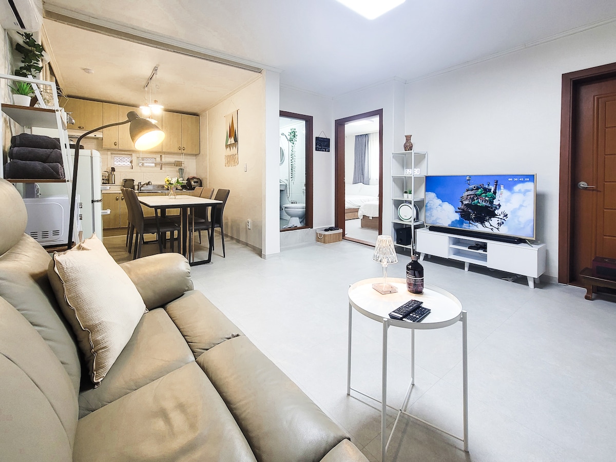 Hongdae 10 phút/Sinchon 10 phút/Sangam Broadcasting Station/DMC Jeungsan Station/King size bed/Mobile TV/Netflix được cung cấp