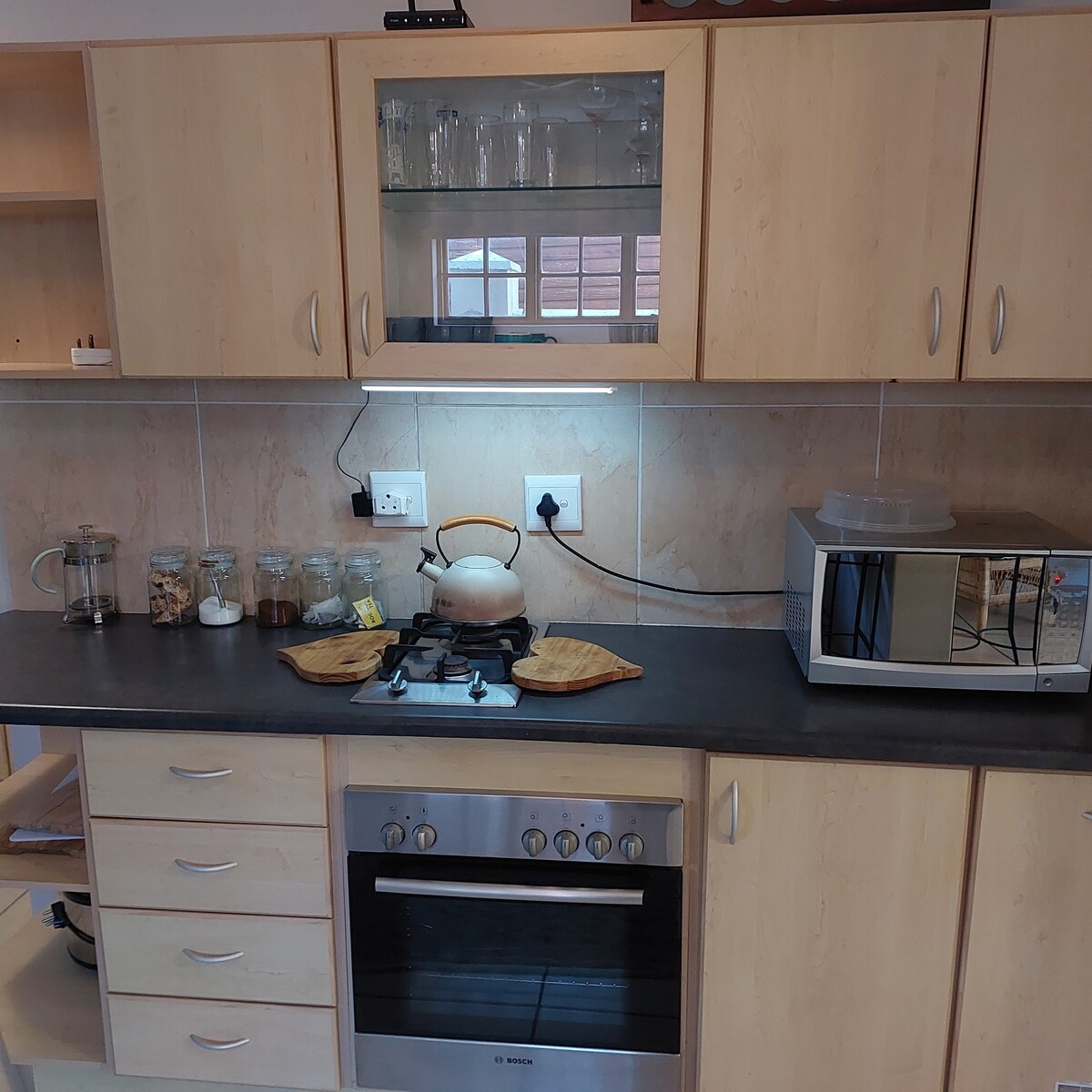 Chào mừng bạn đến với Glen Hurd. Nhà nghỉ thôn dã trong vườn của chúng tôi nằm ở vùng ngoại ô yên bình và yên tĩnh của gia đình Glen Hurd. Nhà nghỉ thôn dã rộng rãi bao gồm một nhà bếp/phòng chờ/khu vực ăn uống thiết kế mở với một braai trong nhà với tất cả các phụ kiện braai cần thiết. Phòng ngủ chính có giường cỡ queen và phòng tắm có vòi sen và bồn tắm riêng biệt. Phòng ngủ thứ 2 có 2 giường đơn. Có hồ bơi để sử dụng trong những tháng mùa hè. Có chỗ để che chắn, ngoài chỗ đỗ xe ngoài đường cho hai phương tiện.