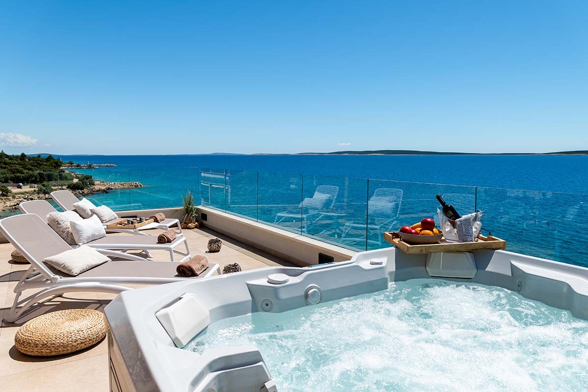 Trải nghiệm Villa Danza del Mar thông qua bộ PHIM TRUYỀN HÌNH** * * với bồn tắm nước nóng, hồ bơi nước nóng, internet nhanh STARLINK và tầm nhìn ngoạn mục ra biển, chỉ cách bãi biển và quán bar 150 m. Trung tâm Vir chỉ cách lối đi dạo biển 10 phút đi bộ. Đưa kỳ nghỉ của bạn lên một tầm cao mới! Cũng có sẵn: gas BBQ, TV màn hình phẳng, bộ ban công, bãi đỗ xe riêng