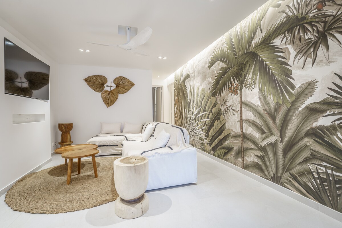 Nằm ở Sainte-Anne, Studio Toti tôn vinh tinh thần du mục sang trọng — cân bằng hoàn hảo giữa đất liền và biển. Đây là điểm khởi đầu lý tưởng để khám phá hai bãi biển trong khoảng cách đi bộ, đi bộ qua thiên nhiên nhiệt đới hoặc đi lang thang các chợ gia vị sôi động. Sau những cuộc phiêu lưu của bạn, hãy thư giãn trong một trong hai hồ bơi có bóng cọ. Không gian bohemian và chân thực, vật liệu tự nhiên và gió mơn man tạo nên sự hài hòa hoàn hảo giữa phiêu lưu, thanh tĩnh và nghệ thuật sống Creole.