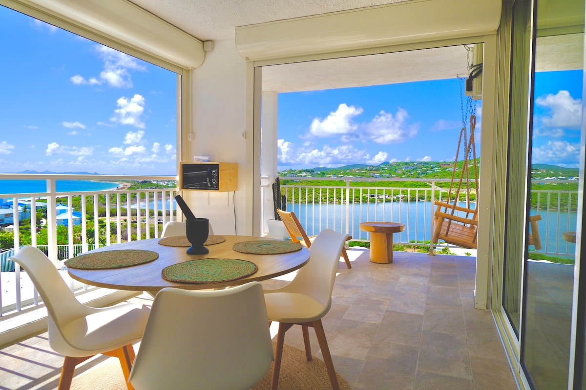 Đó là quang cảnh đẹp nhất ở Vịnh Phương Đông! Một bức tranh toàn cảnh ngoạn mục trên toàn bộ bãi biển Vịnh Phương Đông, St. Barths, Đảo Tintamarre và một phần của Đảo Pinel. Một trải nghiệm thực sự độc đáo. Căn hộ đã được cải tạo hoàn toàn: 2 phòng ngủ riêng biệt (không có tường chung = sự riêng tư hoàn hảo cho hai cặp vợ chồng), giường cỡ king, 2 phòng tắm, 2 nhà vệ sinh. Một tầng lửng có giường đơn (90×200). Một nhà bếp đầy đủ tiện nghi. Phơi sáng ba lần = thông gió tự nhiên. Lối vào trực tiếp đến bãi biển Vịnh Phương Đông.