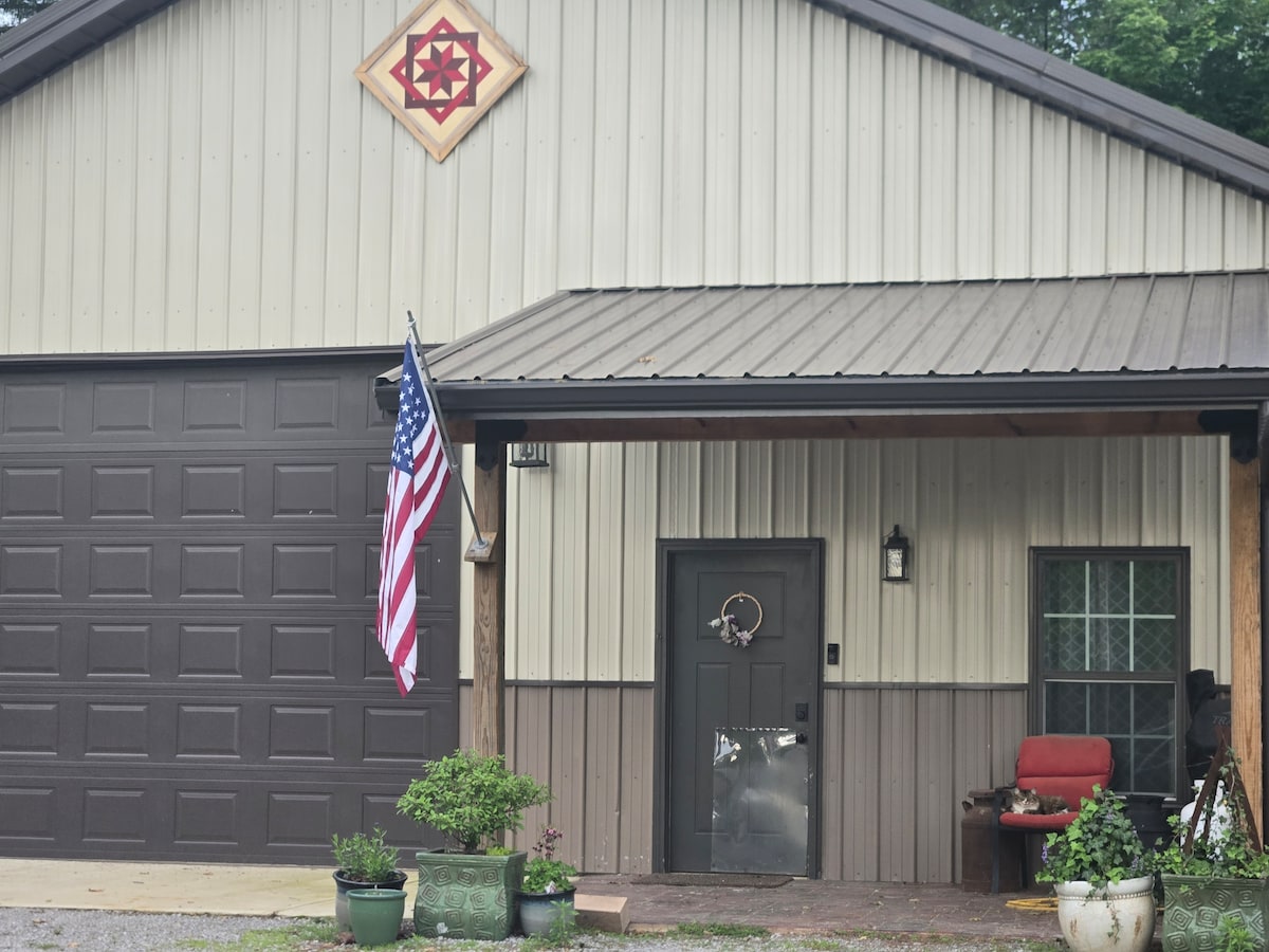 Take it easy at this unique and tranquil Barndominum in the Mountains of TN. Sit by the pond and watch the wildlife. Relax in the Hammock. Enjoy a fire on a cool night. Cool off in the pool (closed for season). Explore the sights and sounds of East TN. Pets are family and are welcome, please reach out for additional Pet Policy information. Fishing enthusiasts are welcome as well, we are 25 minutes from Chickamauga. Secure parking and outlets available for your boat.