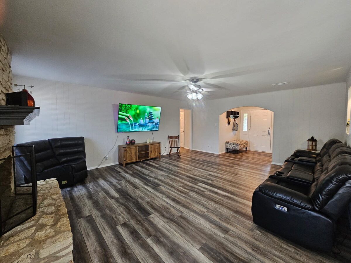 Nhà kiểu Địa Trung Hải trong khu dân cư với tầm nhìn ra sân sau phong cách đồng quê. Gần Fort Hood/Khu mua sắm. Chai rượu vang miễn phí! Không gian văn phòng. Giường cỡ King trong phòng ngủ chính, phòng tắm thông với phòng ngủ có vòi sen/bồn tắm ngâm (không có vòi xoáy nước). 2 giường cỡ Queen. 3 TV có Roku để xem trực tuyến. Máy pha cà phê Keurig (có sẵn cốc K-Cup), tủ lạnh cỡ lớn VÀ tủ lạnh mini, 2 sân hiên có chỗ ngồi, bếp nướng ga (phí sử dụng 15,00 cho 1 lần). Lò sưởi điện LR. WIFI. KHÔNG ĐƯỢC MANG THEO THÚ CƯNG. Có đèn chiếu sáng bên ngoài/camera bên ngoài tại chỗ ở vì lý do an toàn. Có máy chạy bộ theo yêu cầu.