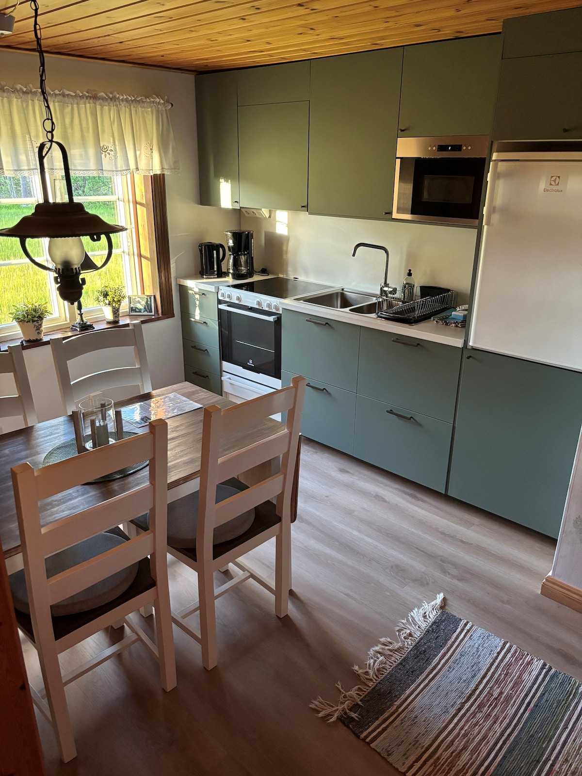 Enjoy a unique and peaceful stay at this Cozy Summer House - Lakeside Fully Equipped. It's located right next to the beautiful Rådasjön lake. You will have a private area and beach at the lake, where you also have your own BBQ place, wood is included. The house interior is modern and nice for a comfortable stay. There is also an outside dining table, various chairs for chilling. Kids chairs and beds are available if needed. Electric car charging is also available at a small cost.