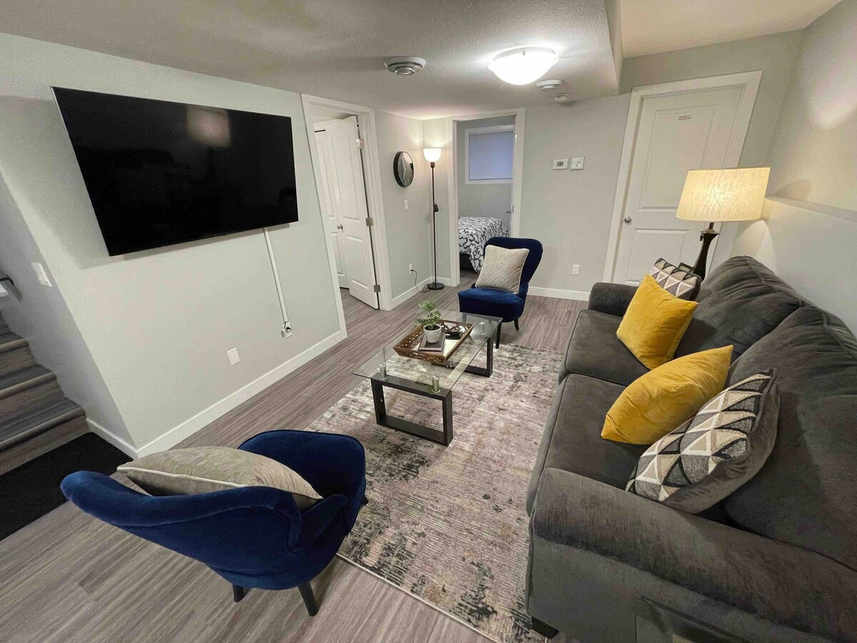 Căn hộ tầng hầm 1 phòng ngủ ấm cúng hoàn toàn mới ở Rosewood - Phòng cho thuê dành cho khách ở Saskatoon, SK, Canada - Airbnb. Căn hộ tầng hầm rộng rãi và được trang bị nội thất trang nhã, rộng rãi 756 m2 rộng rãi của chúng tôi nằm ở một trong những khu dân cư tốt nhất ở Saskatoon. Rosewood Meadows tự hào có sự thanh bình tuyệt vời, và các công viên vui chơi và cách cửa hàng tạp hóa, phòng tập thể dục và các tiện nghi khác ba phút (Costco, McDonald 's, KFC, H&M, Sephora, v.v.) mở cửa cho công chúng.