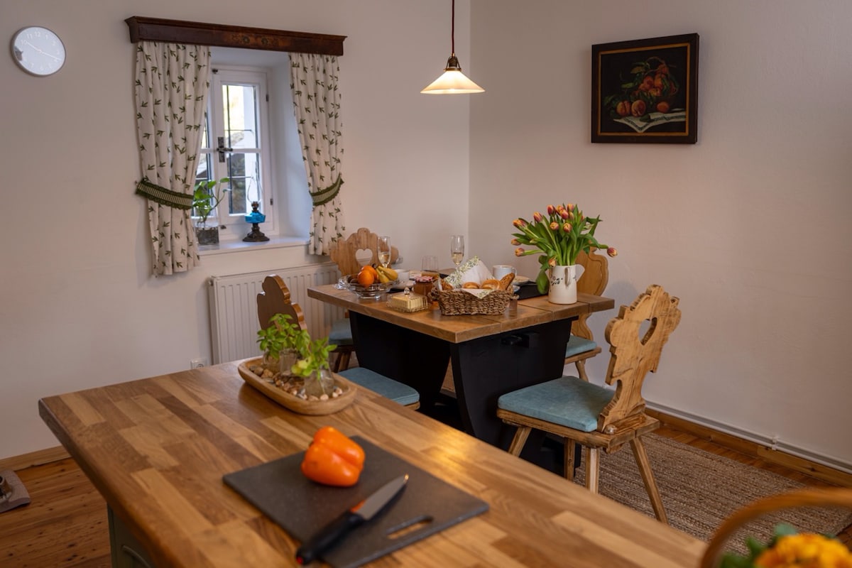 Kỳ nghỉ tại Schusterhans là một niềm vui đặc biệt dành cho các gia đình và những người trẻ tuổi và "off-road"! Trong căn hộ rộng rãi, bạn sống ở nhà và tận hưởng kỳ nghỉ của mình. Chúng tôi rất vui được chuẩn bị bữa sáng cho bạn như mong muốn – từ cổ điển đến thịnh soạn và truyền thống, hầu như chỉ từ sản xuất của chúng tôi! Trong căn hộ, bạn sẽ tìm thấy một phòng bếp - phòng khách rộng rãi, 2 phòng ngủ, một phòng tắm lớn và một sân thượng riêng!