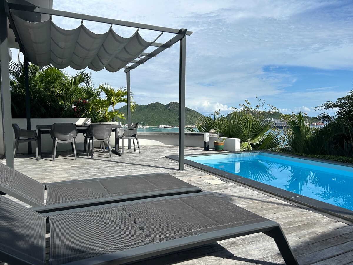Chào mừng bạn đến với Secret View! Một nơi nghỉ ngơi thanh lịch và thân mật với hồ bơi riêng và sân thượng rộng rãi nằm ngay trên đầm phá. Được thiết kế cho các cặp đôi tìm kiếm sự bình yên, lãng mạn và kín đáo, chỉ cách Maho sôi động với các nhà hàng, quán bar và sòng bạc, và Bãi biển Vịnh Mullet, một trong những bãi biển đẹp nhất của hòn đảo với làn nước xanh ngọc tuyệt đẹp. Bãi đỗ xe riêng miễn phí. Viên ngọc ẩn này là khung cảnh hoàn hảo cho những khoảnh khắc khó quên cùng nhau.