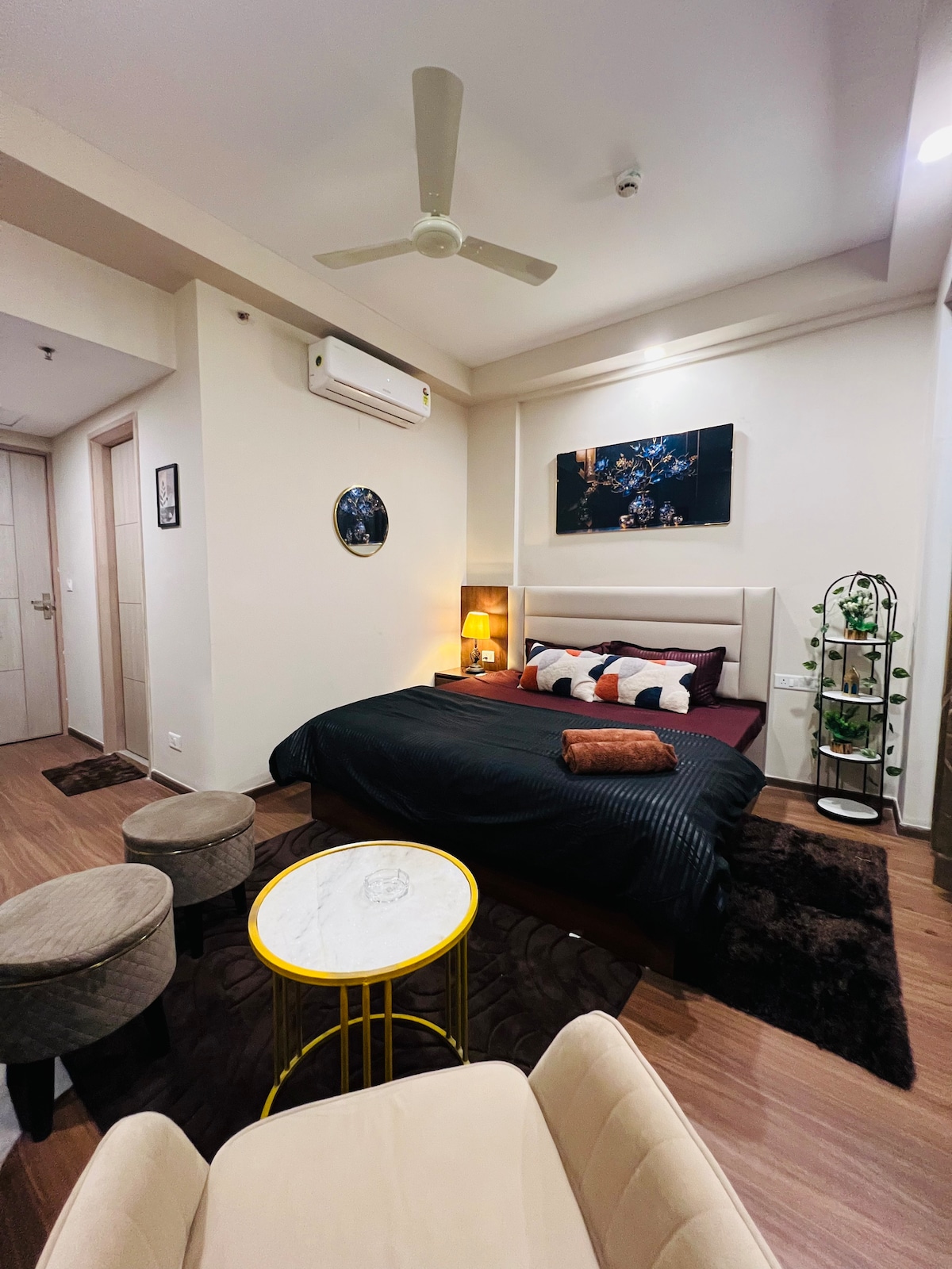 Fully furnished luxurious studio apartment with all modern amenities available in Greater Noida near Metro station. Luxurious , Specious and Couple friendly studio in Greater Noida Near Expo Mart. What You’ll Love: ✔ Unique Interior – Enjoy the Mesmerizing Interior. ✔ Modern Comfort – A beautifully furnished space with a comfy bed, cozy seating, and stylish decor. ✔ Fully Equipped Kitchen – Cook your favorite meals with ease. ✔ Fast WiFi & Smart TV – Stay connected and entertained.
