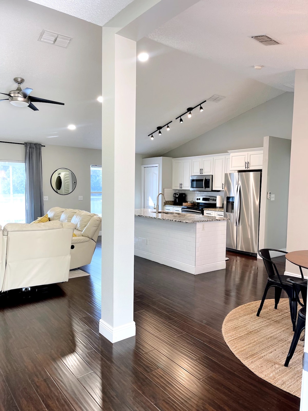 Nhà của chúng tôi là nhà 3 phòng ngủ/2 phòng tắm. Bạn bước vào một không gian mở với phòng ăn, phòng khách và nhà bếp sáng sủa. Phòng ngủ thứ nhất là Phòng ngủ chính, được trang bị phòng tắm đầy đủ, tủ quần áo rộng rãi, giường cỡ King và gương soi toàn thân. Phòng ngủ thứ 2 có giường cỡ queen, tủ quần áo, được trang trí tỉ mỉ và nằm ngay bên cạnh phòng tắm. Phòng ngủ thứ 3 có 2 giường đơn, không khí FL Touch và cách phòng tắm vài bước chân. Bên ngoài là một sân sau tuyệt đẹp với hồ bơi riêng của bạn! Hồ bơi được sưởi ấm có tính phí.