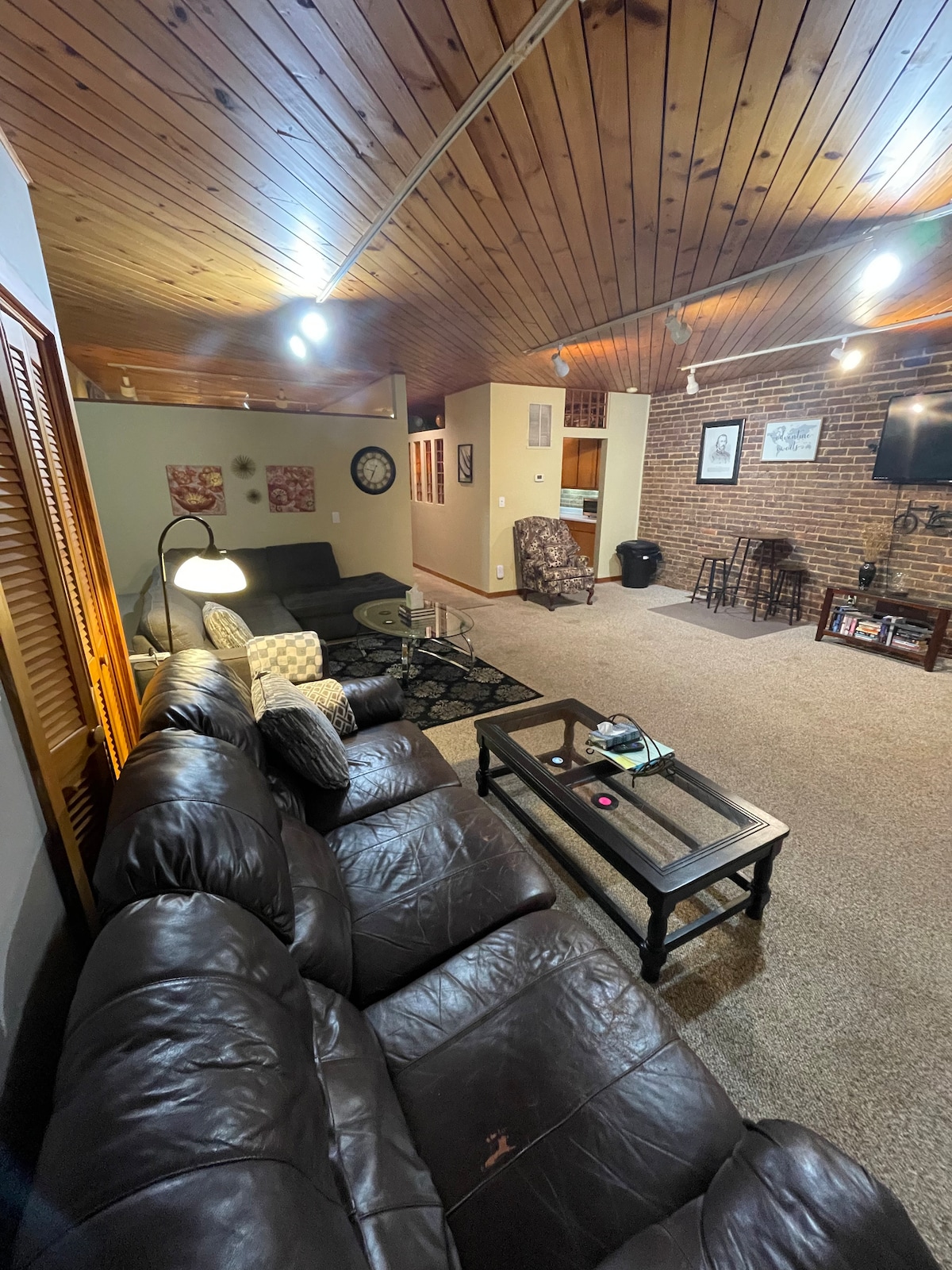 Guest love the peace and the views here at our retreat. Enjoy a morning or evening in the hot tub, sun on the pool deck and swim in warm weather. Relax by the fireplace or fire pit (roast some s’mores). Walk the property to see the chickens, horse, donkey and goats. At our farm we love diversity, support all love, and don’t think that hate makes America great - if you don’t agree we may not be the destination for you. We have added a small chair that converts to a bed- we can squeeze 3 in.