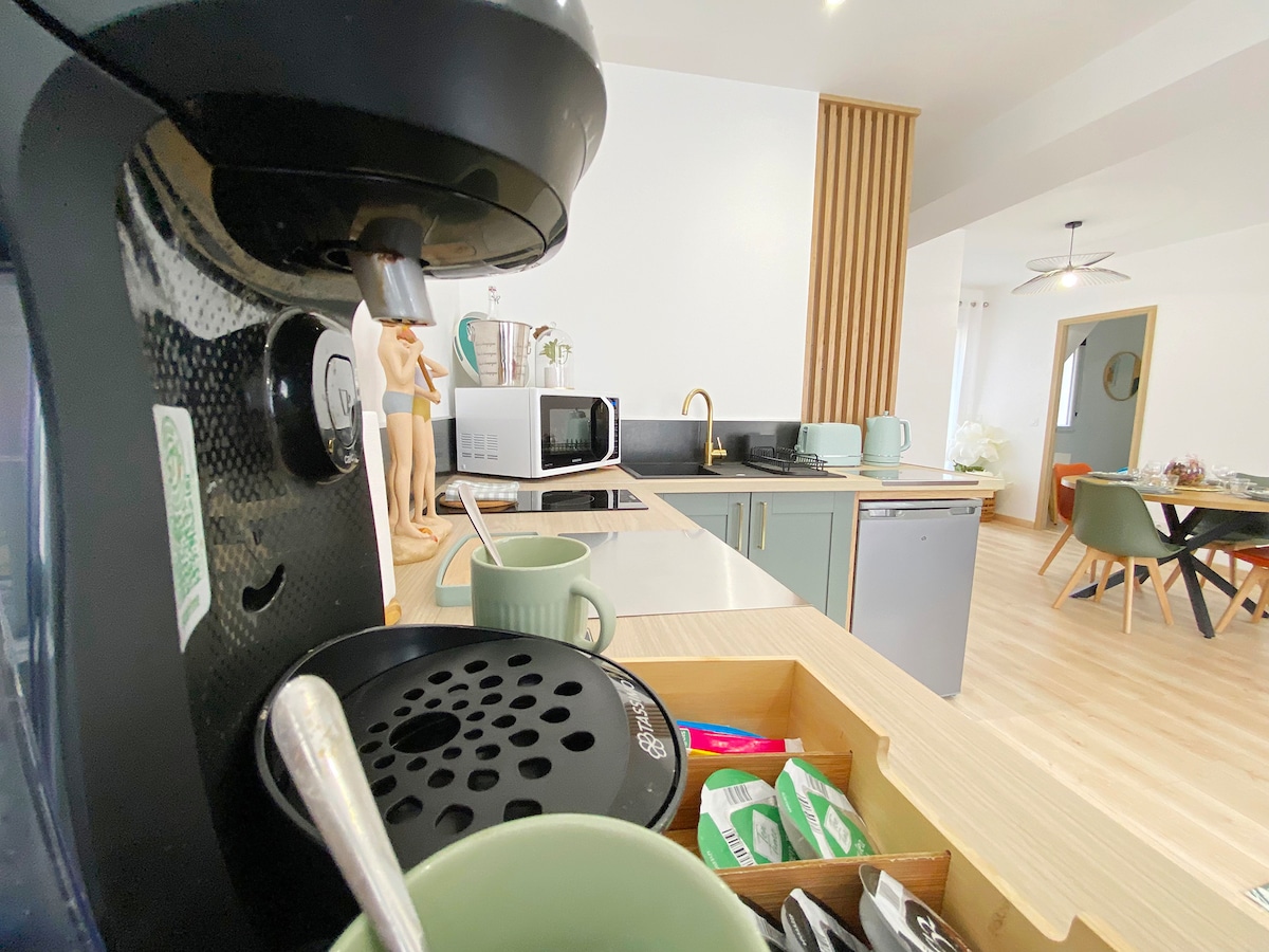 Gîte 5 người 80 m² trong con đường đi bộ đường dài yên tĩnh, cách Dieppe 7 km. Nó bao gồm: - 1 phòng ngủ với giường đôi 160*200 - 1 phòng ngủ với 3 giường đơn 90*200 - Phòng khách/phòng khách có TV, đầu đĩa DVD, máy chơi game - Bếp được trang bị đầy đủ tiện nghi (lò nướng, bếp, máy rửa chén, lò vi sóng, lò vi sóng, máy giặt, senseo, ấm đun nước...) - Phòng tắm với khăn tắm, bồn tắm, nhà vệ sinh kiểu Ý. - Sân thượng có tiệc nướng - Nội thất em bé Có sẵn giường khi đến và khăn trải nhà vệ sinh.