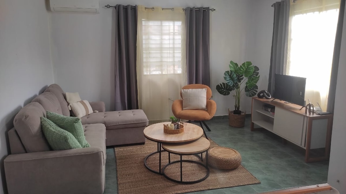 Thư giãn với cả gia đình trong ngôi nhà yên tĩnh và ấm cúng ngủ 6 người này. Nó có 2 phòng ngủ với giường queen và giường sofa queen trong phòng khách, điều hòa không khí trong phòng ngủ và phòng khách, 2 phòng tắm có nước nóng, Wifi, TV có truyền hình cáp, netflix, Prime trong phòng khách và trong phòng ngủ chính, nhà bếp lớn, phòng khách, phòng khách, phòng giặt ủi đầy đủ. Nó chỉ cách David 7 phút, cách Boquete 20 phút và gần sông và hồ bơi. Chúng tôi chấp nhận thú cưng với mức phí $ 40.