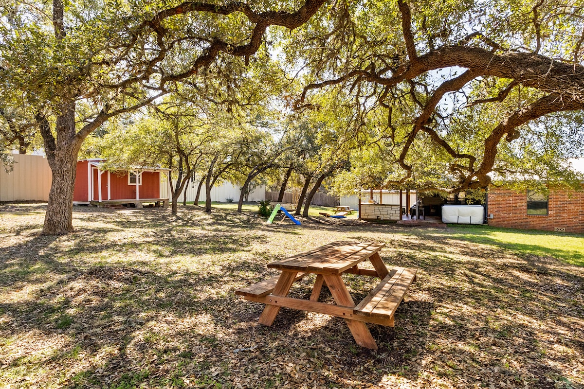Trốn đến một thiên đường Hill Country được thiết kế cho hai người. Ngâm mình dưới những vì sao trong bồn tắm nước nóng riêng của bạn, nhấm nháp cà phê trên ghế xích đu trước hiên nhà hoặc dành cả ngày nằm dài bên hồ bơi lấp lánh với thác nước êm dịu và hố lửa rực rỡ. Cabana bên hồ bơi có cảm giác như khu nghỉ dưỡng riêng của bạn, hoàn chỉnh với nhà bếp ngoài trời, lò sưởi, TV và thậm chí một phòng xông hơi khuynh diệp. Chỉ cách các điểm tham quan ở San Antonio một quãng lái xe ngắn - nhưng cách xa thế giới trong sự quyến rũ yên bình của vùng nông thôn.