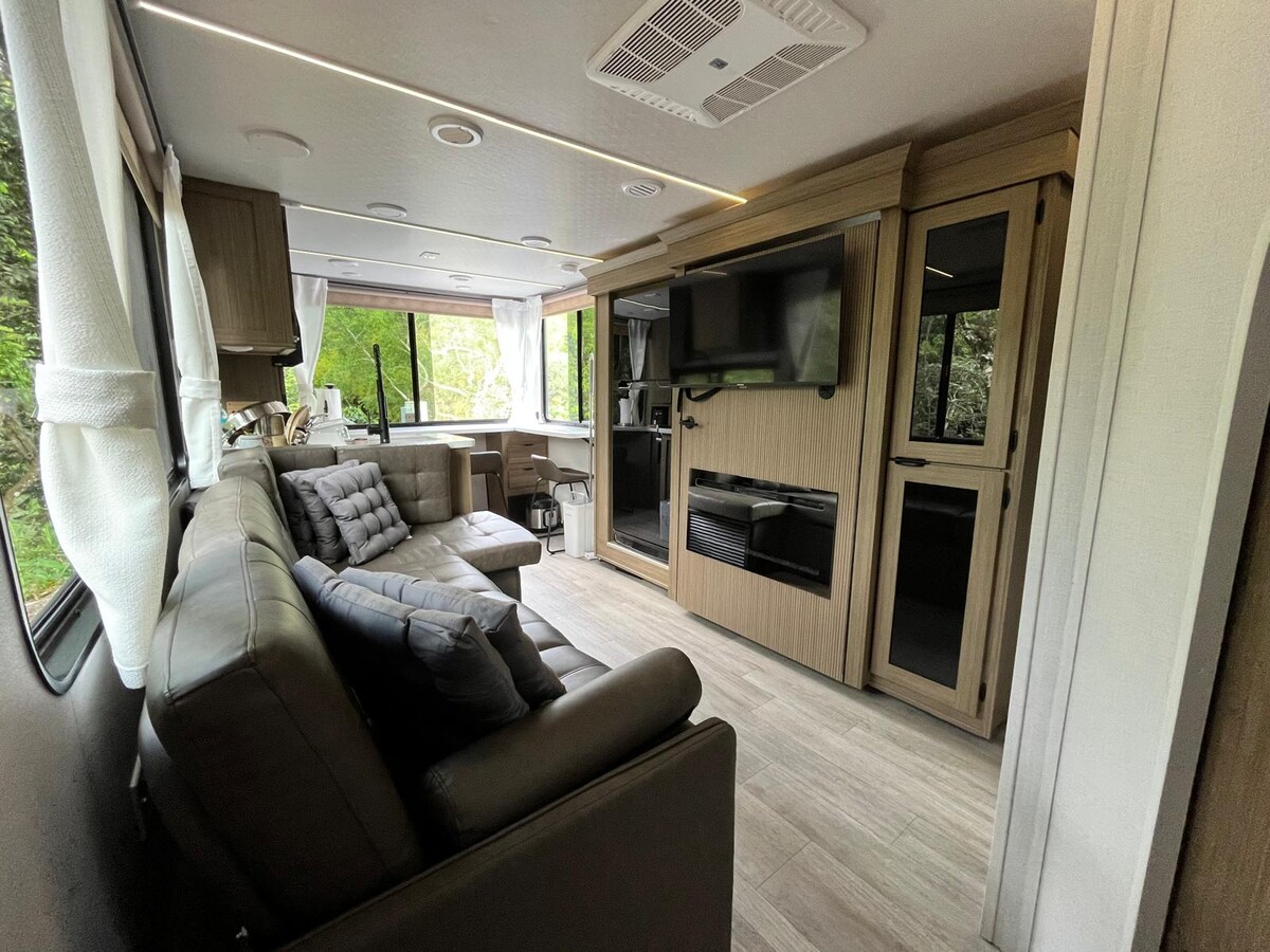 Trải nghiệm ở trong một chiếc xe cắm trại giữa thiên nhiên. Khung cảnh núi non tuyệt đẹp và âm thanh của dòng sông hài hòa với những con chim ghé thăm trang trại của chúng tôi sẽ làm cho thời gian lưu trú của bạn trở nên dễ chịu.