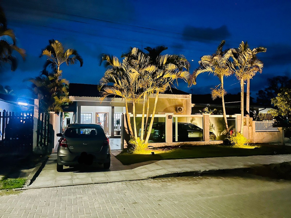 Viva dias incríveis em Guaratuba! Nossa casa moderna oferece total privacidade a apenas 3 min de carro da praia. Perfeita para até 9 pessoas, conta com 2 suítes, ar-condicionado e mezanino para jovens. Destaques: • Piscina privativa com iluminação noturna. • Área Gourmet completa com churrasqueira e cervejeira. • Wi-Fi rápido e 3 vagas de garagem. • Kit bebê: Disponibilizamos berço e cadeirão. Localizada no seguro bairro Cohapar, é o refúgio ideal para famílias que buscam conforto e lazer! 🌊